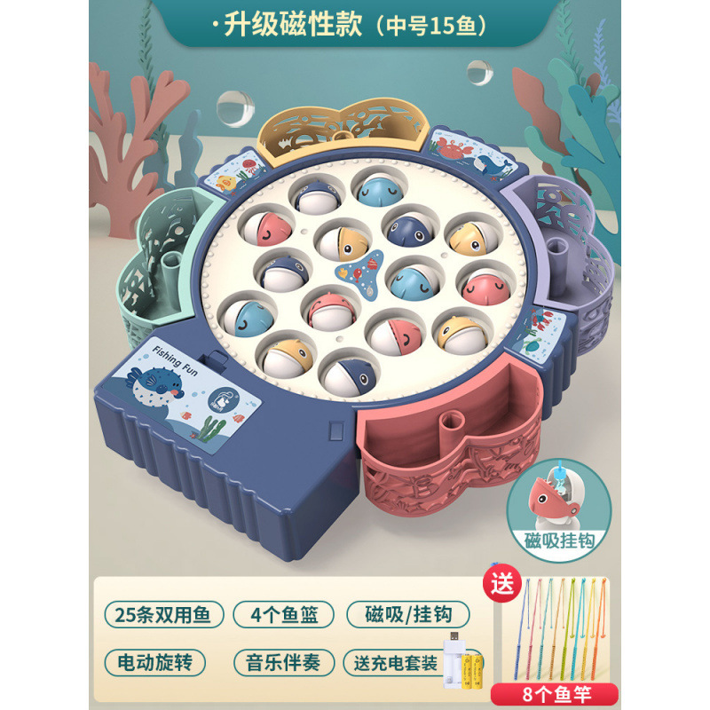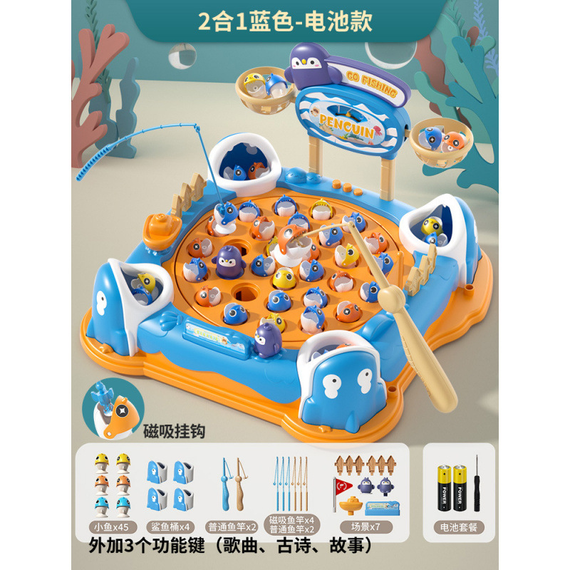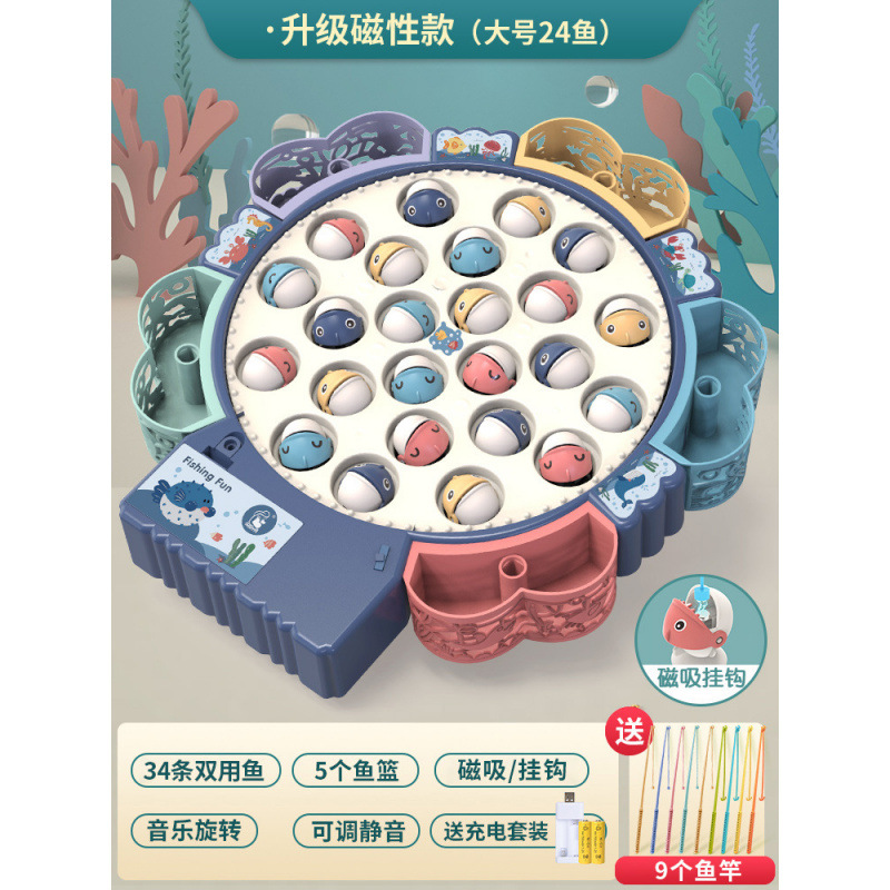 • 블루 [자기/충전식 모델] 양용 물고기 34마리 막대 9개 + 물고기 바구니 5개 + 음악(조정 가능한 음소거)