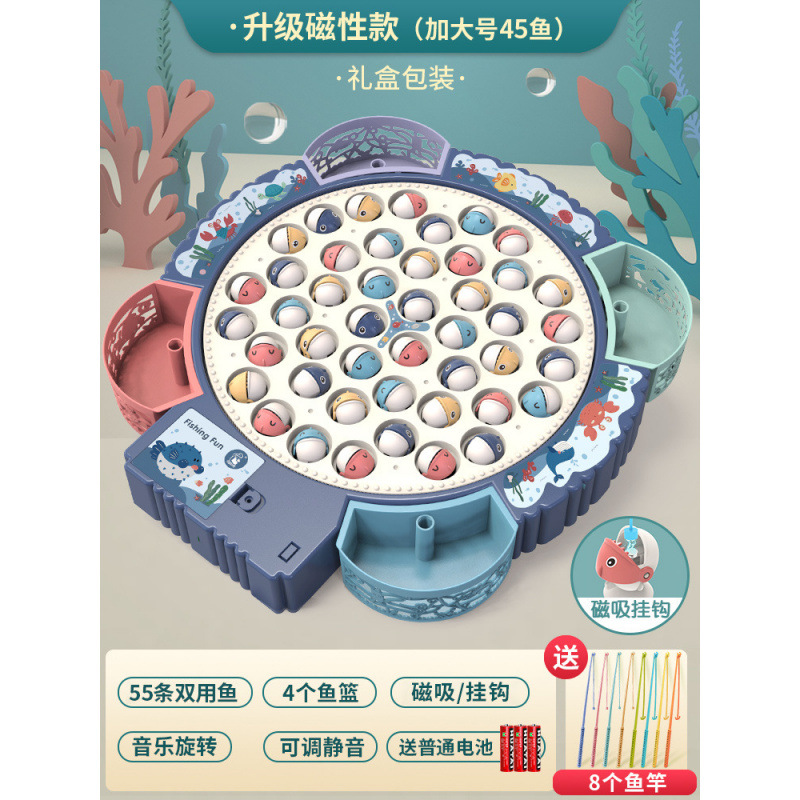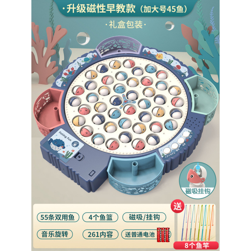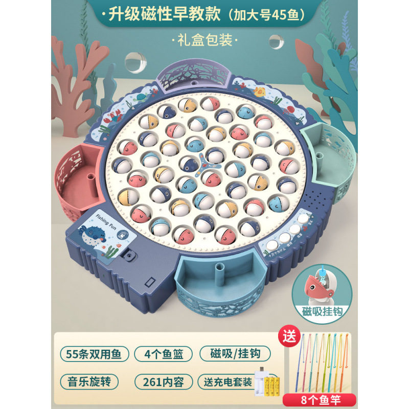 • 블루 [후크/충전식 선물상자] 물고기 55마리 막대 4개 + 물고기 바구니 4개 + 음악 + 조기교육