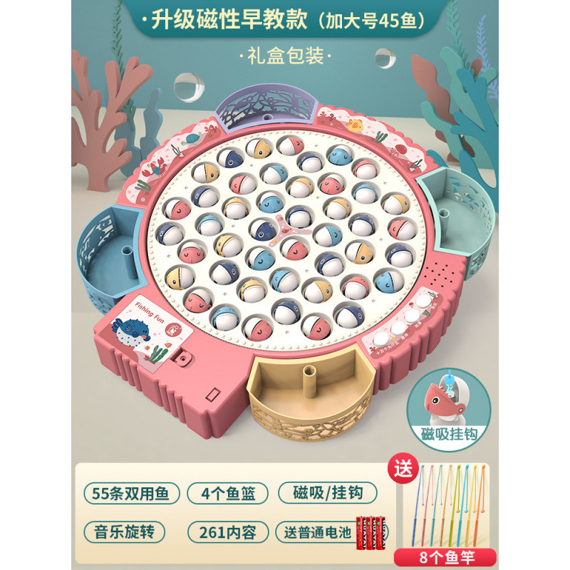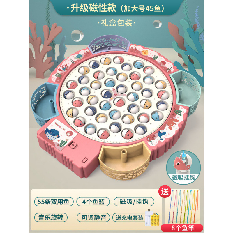 • 핑크 [자석/충전식 선물 상자] 양용 물고기 55마리 막대 8개 + 물고기 바구니 4개 + 음악(