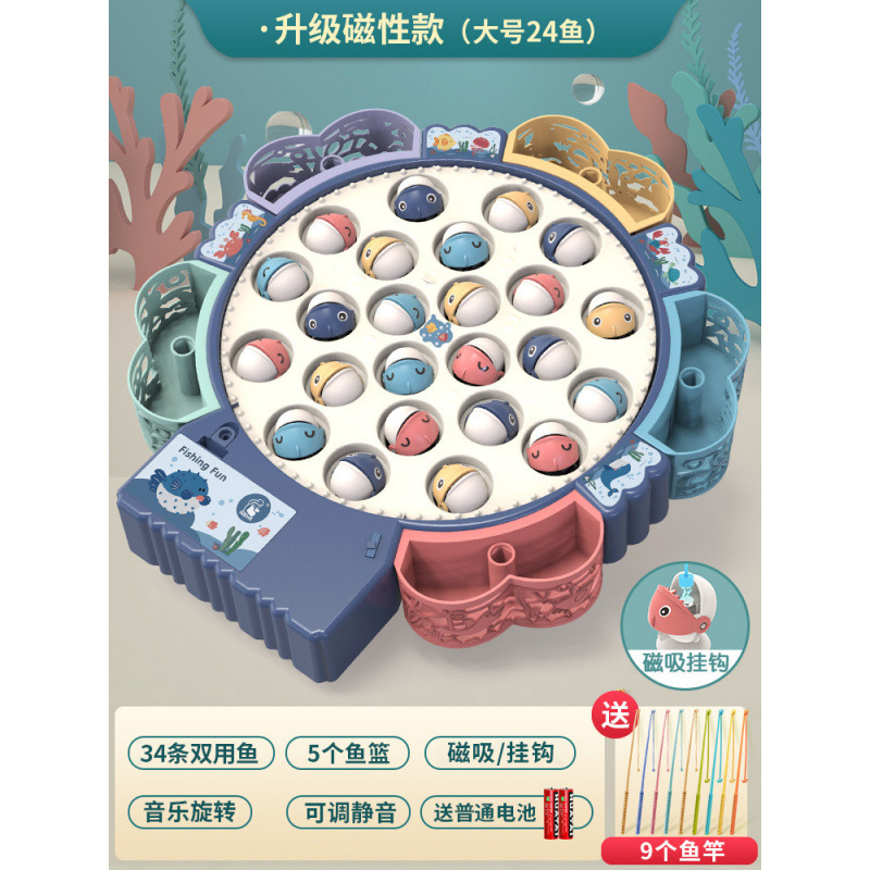 • 블루 [자기/배터리 모델] 양용 물고기 34마리 막대 9개 + 물고기 바구니 5개 + 음악(조정 가능한 음소거)