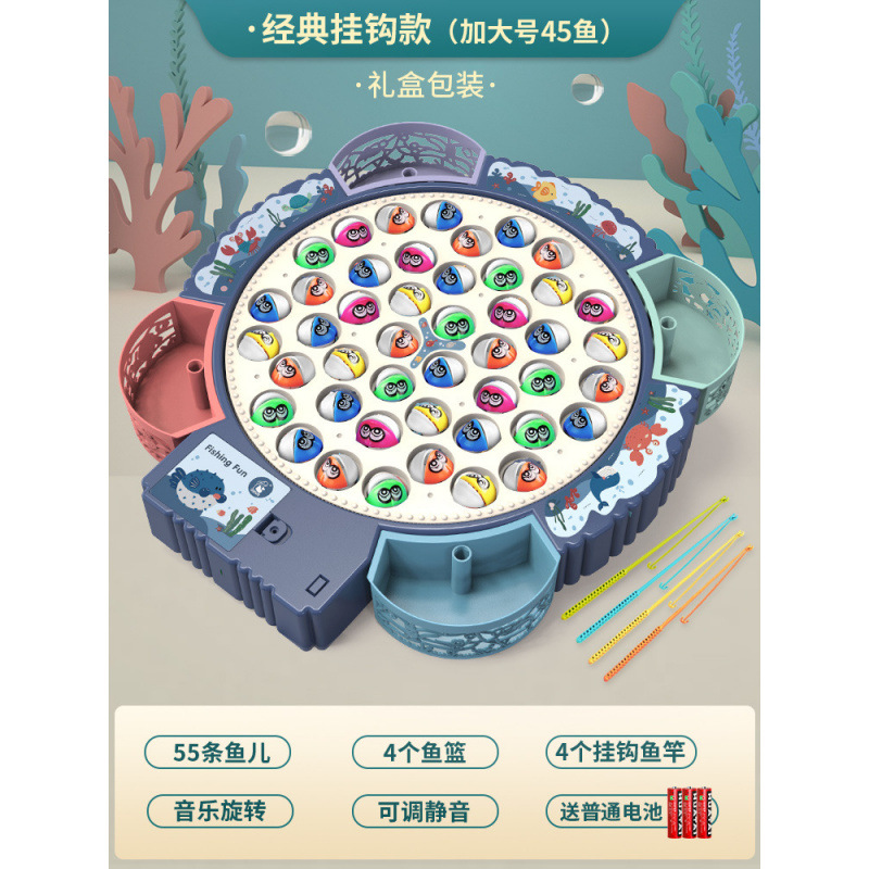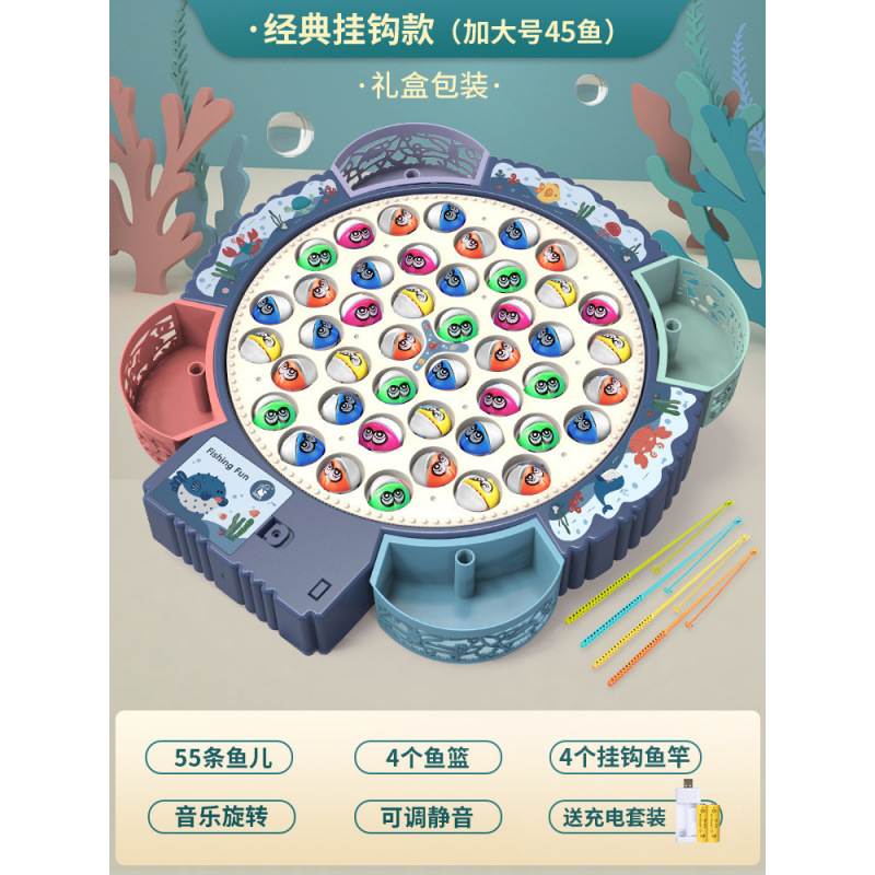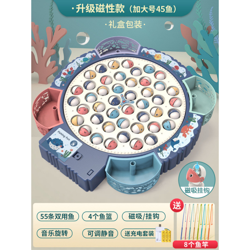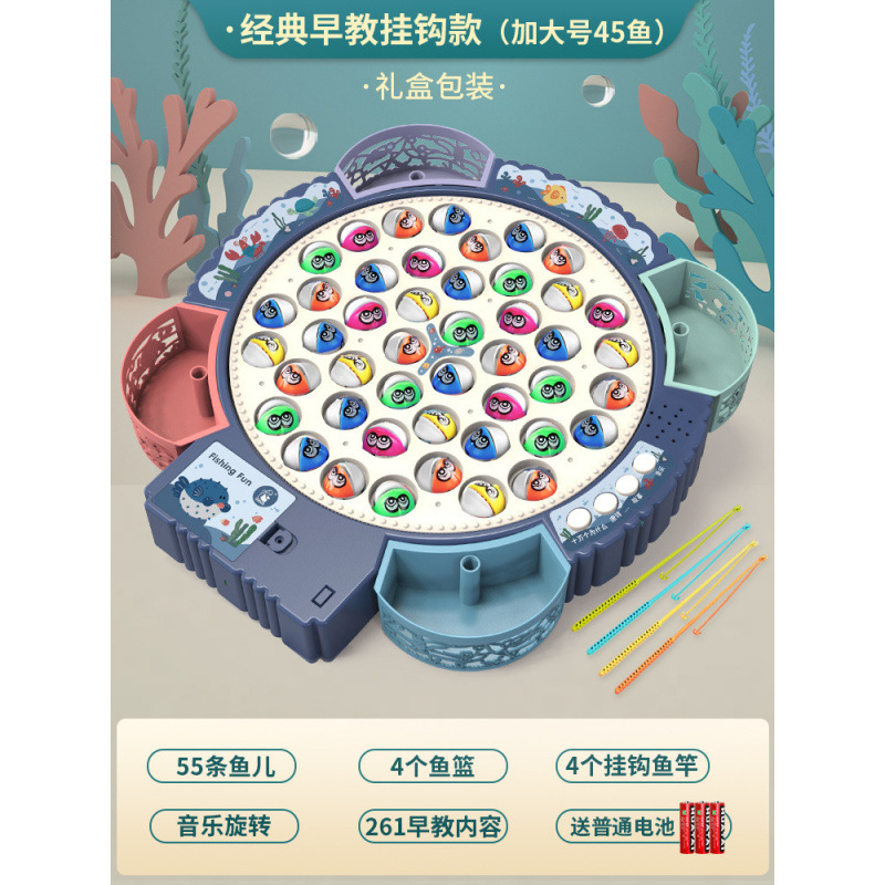 • 블루 [후크/충전식 선물 상자] 물고기 55마리 막대 4개 + 물고기 바구니 4개 + 음악(조절 가능)