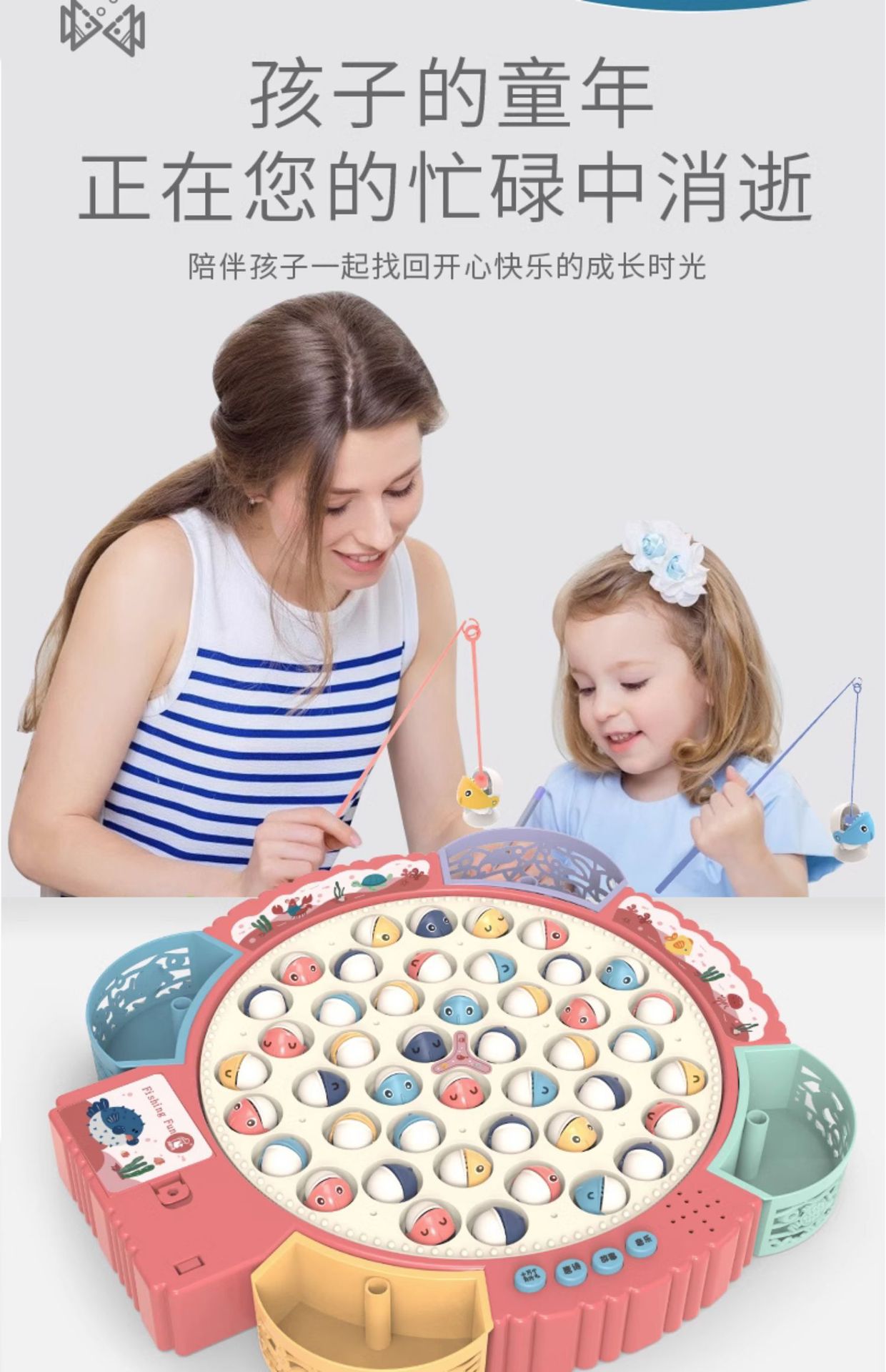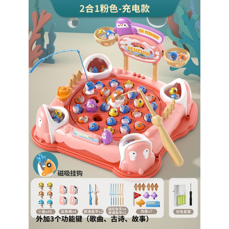 • 핑크 [자기/충전식 모델] 양용 물고기 34마리 막대 9개 + 물고기 바구니 5개 + 음악(조정 가능한 음소거)