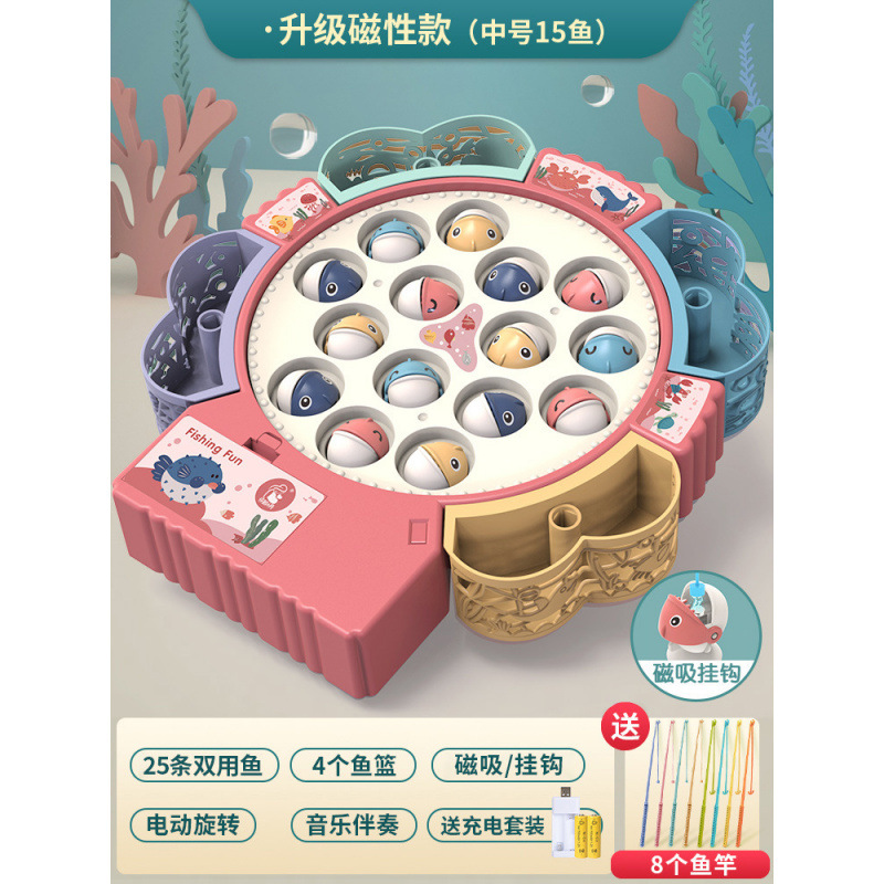 • 핑크 [자기/충전식 모델] 양용 물고기 25개 막대 8개 + 물고기 바구니 4개 + 음악