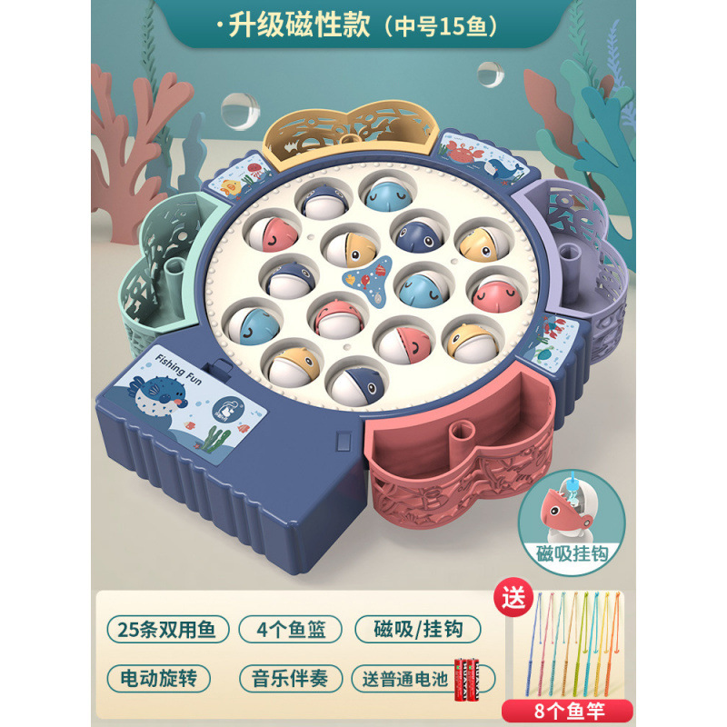 • 블루 [자기/배터리 모델] 양용 물고기 25개 막대 8개 + 물고기 바구니 4개 + 음악