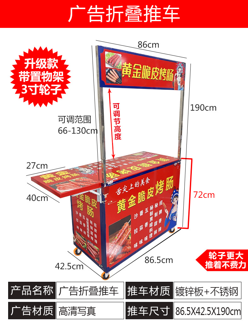 바삭바삭한 소시지 구이 기계, 가스 상업용 매점 장비, 야시장 특수 트롤리, 새로운 전분 소시지 노점 구이 기계