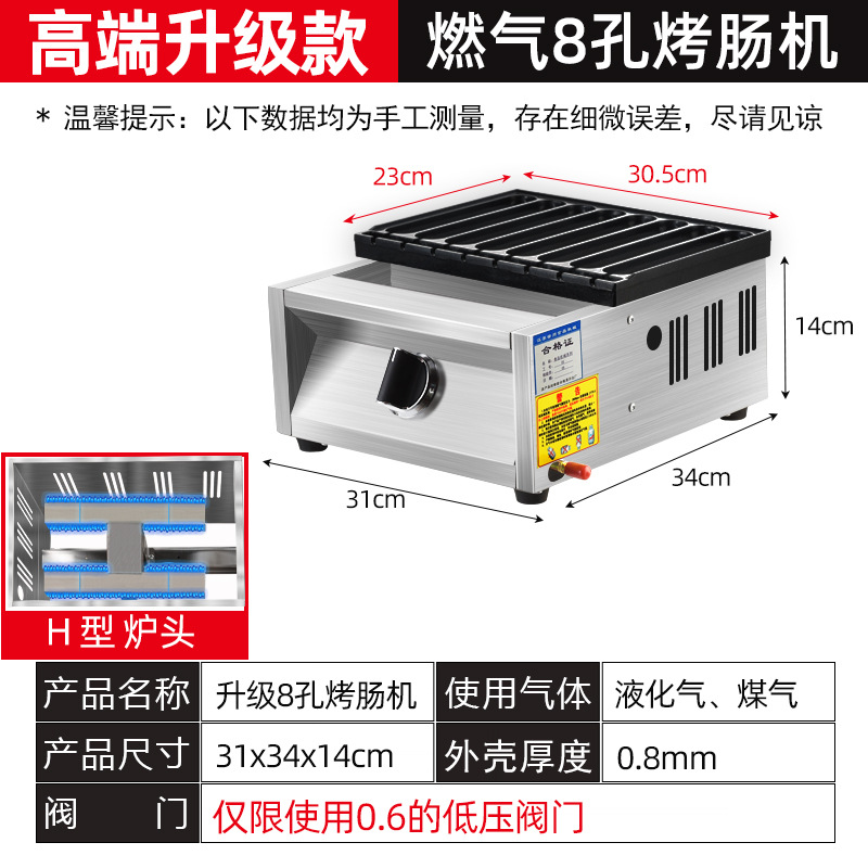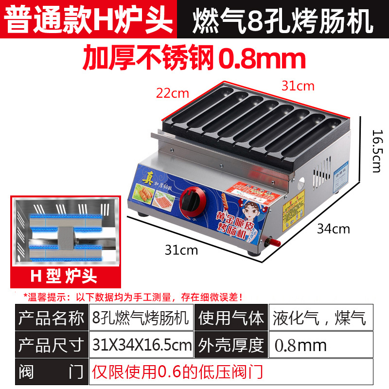• 고급스러운 가스 8구 소시지 그릴(두꺼운 소시지 플레이트 + H형 버너) SF Express