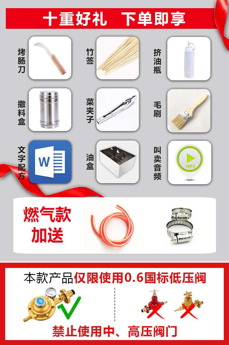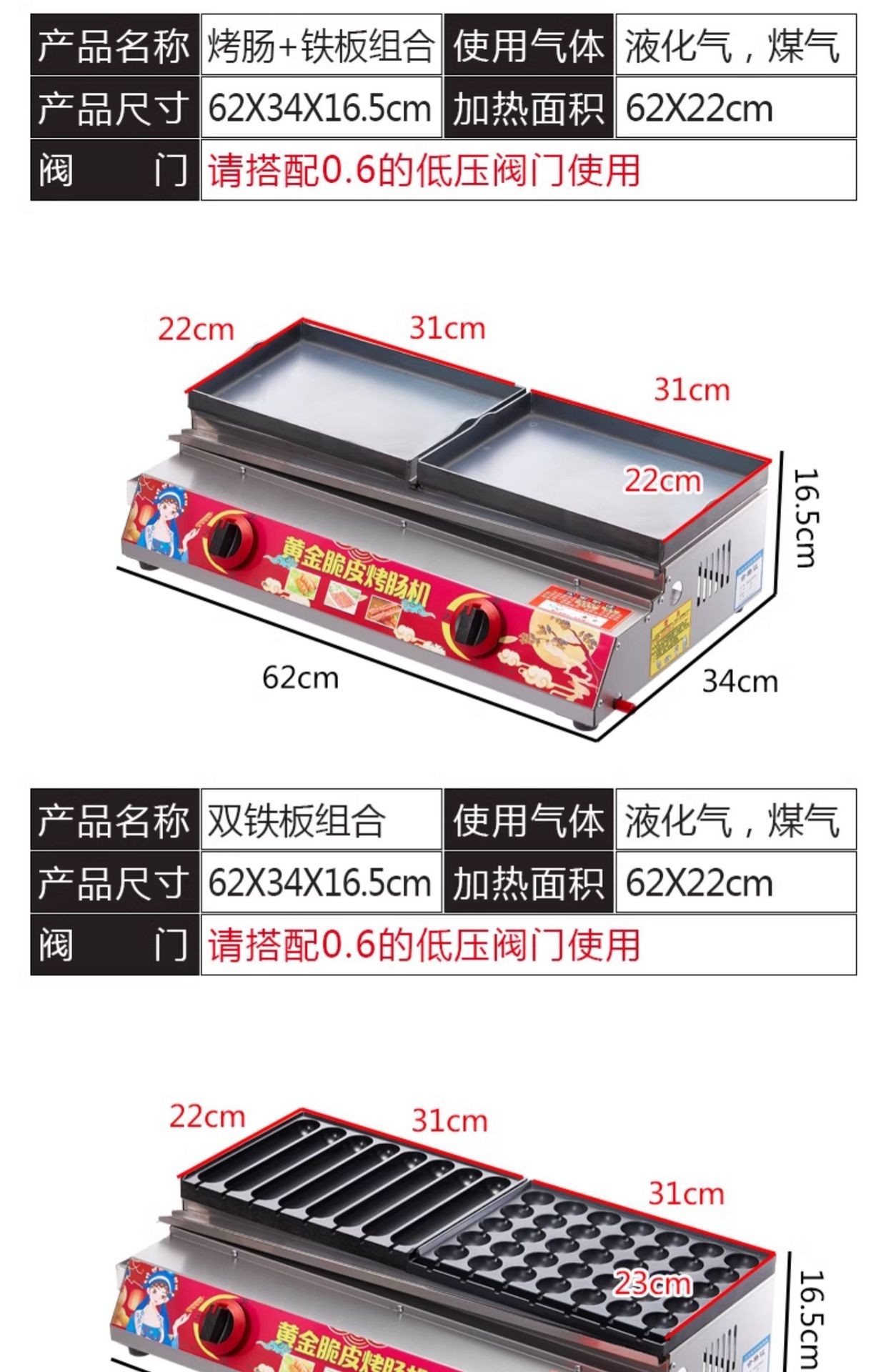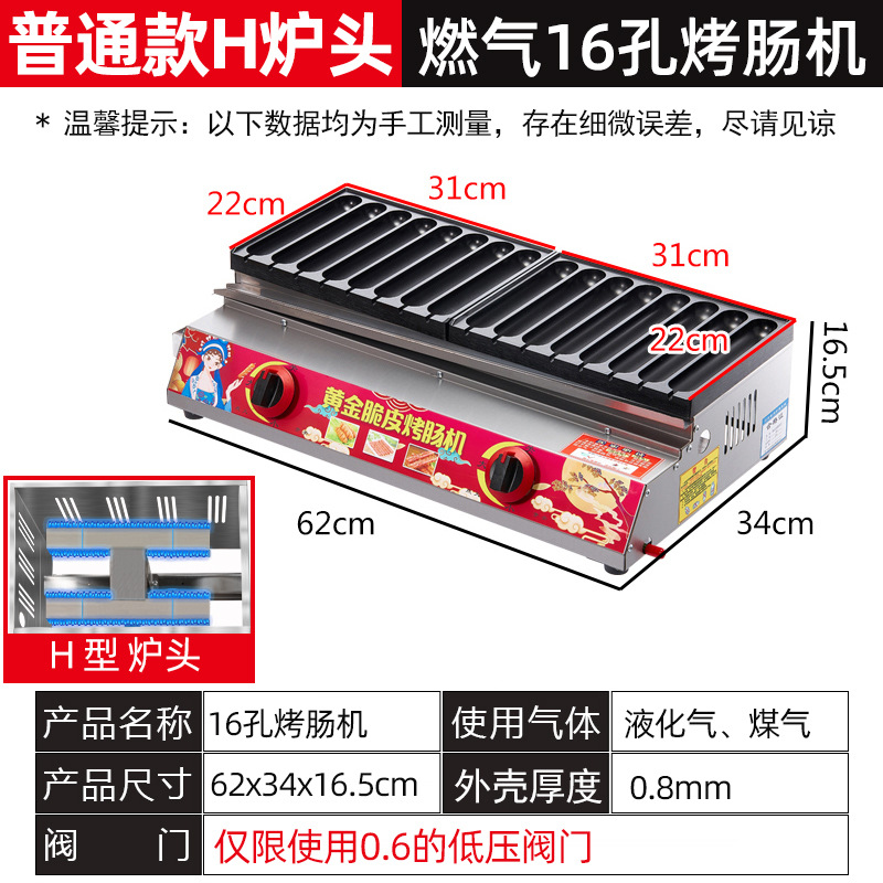 • 고급스러운 가스 16구 소시지 그릴(두꺼운 소시지 플레이트 + H형 버너) SF Express