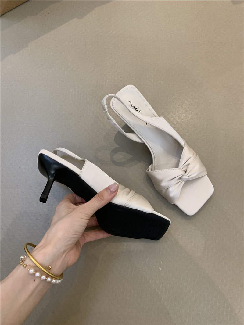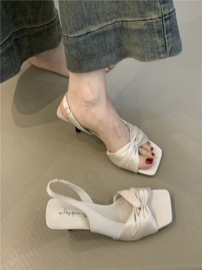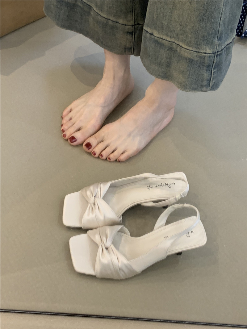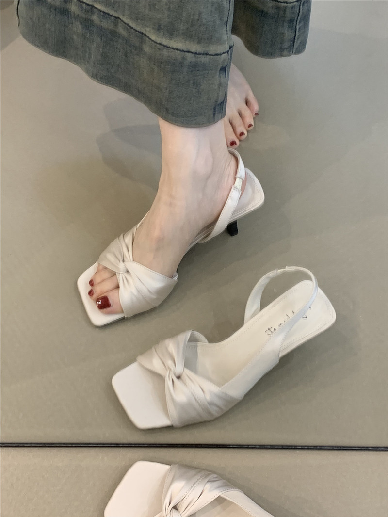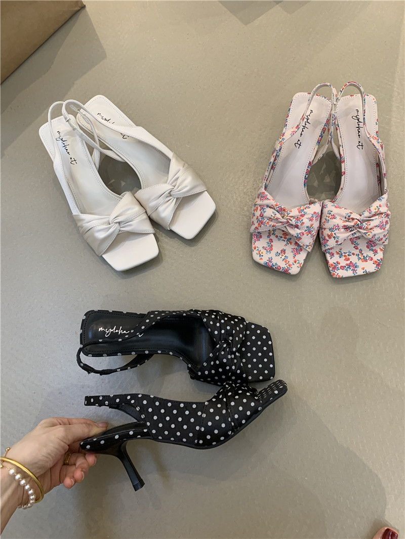 여성을위한 프랑스 스타일 하이힐 2025 새로운 스타일 부드러운 요정 스타일 꽃 무늬 스커트 오픈 발가락 스틸레토 샌들 여성을위한