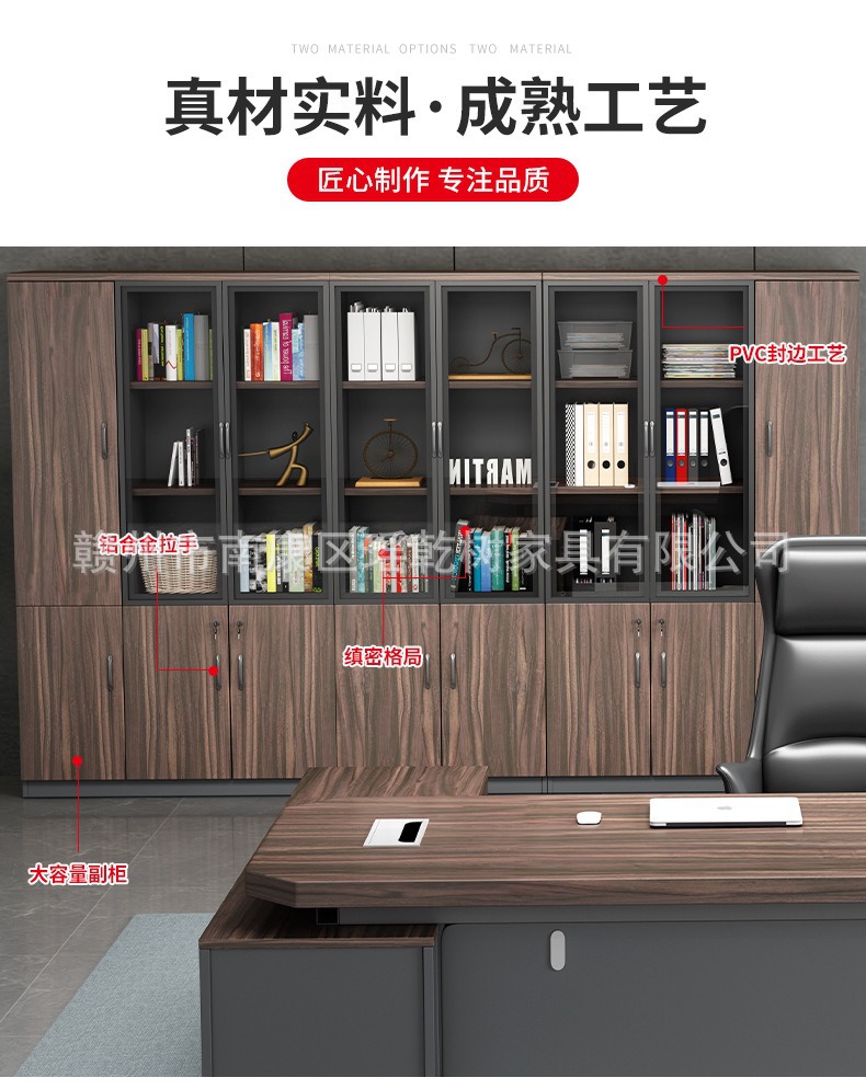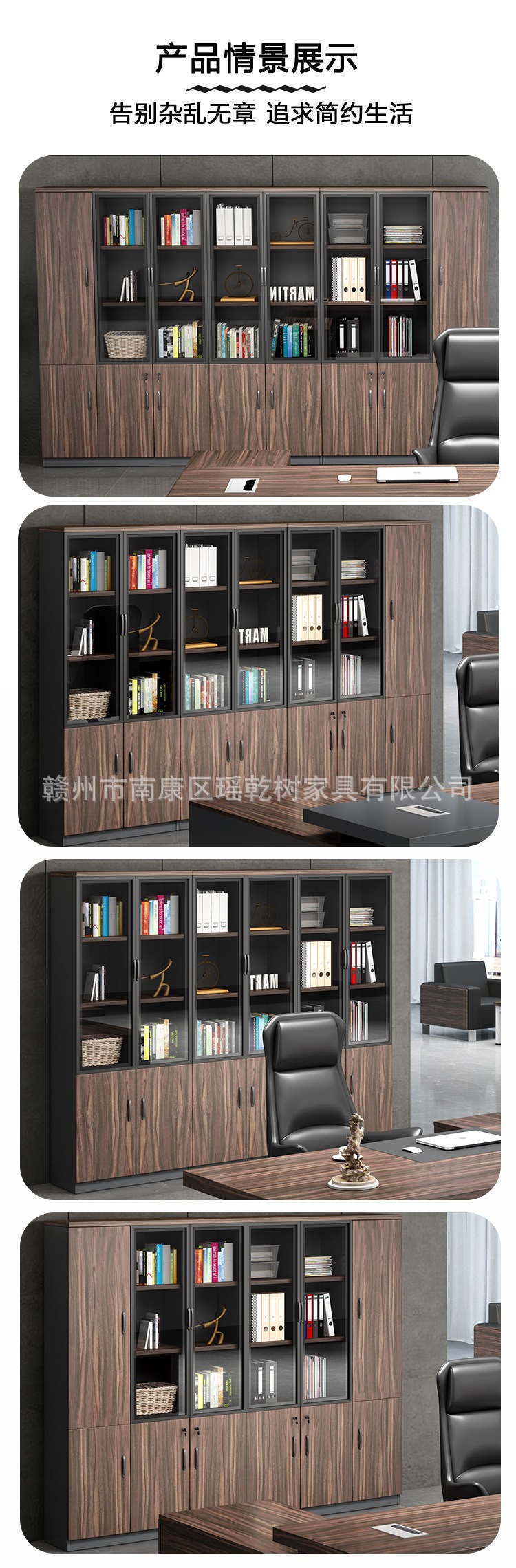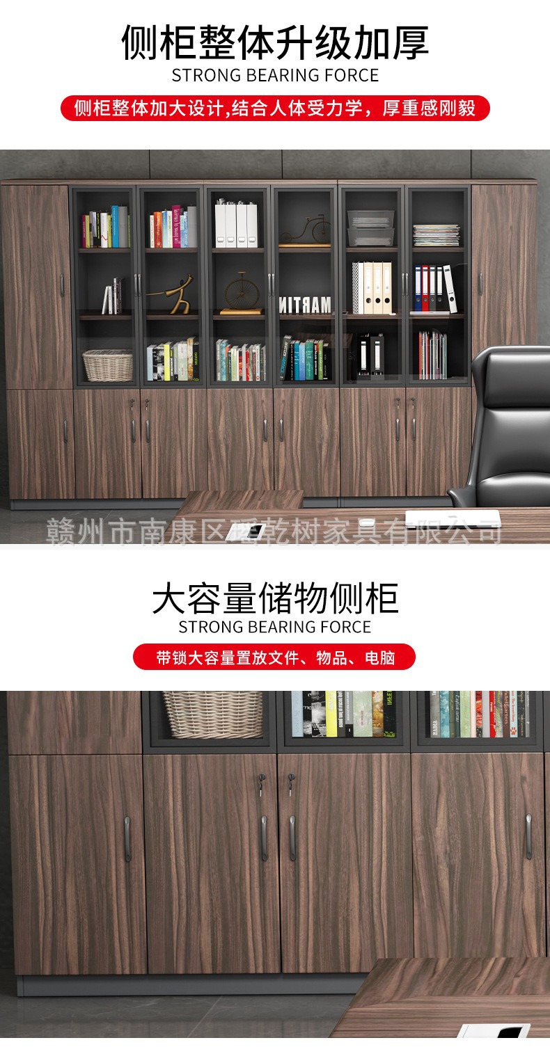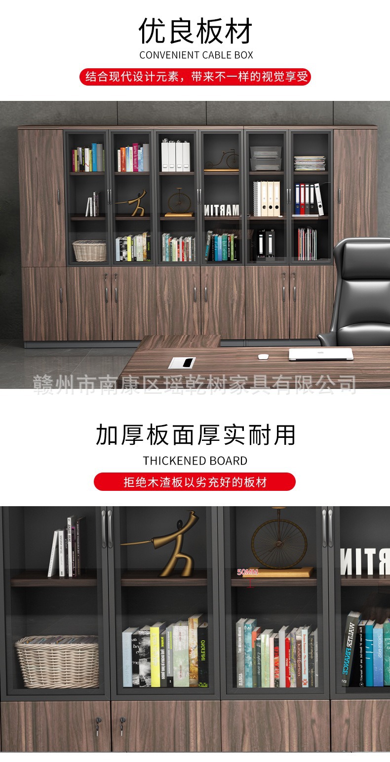 도어 잠금 장치가 있는 사무실 파일 캐비닛, 간단하고 현대적인 사무실 파일 저장 캐비닛, 유리 디스플레이 나무 책장