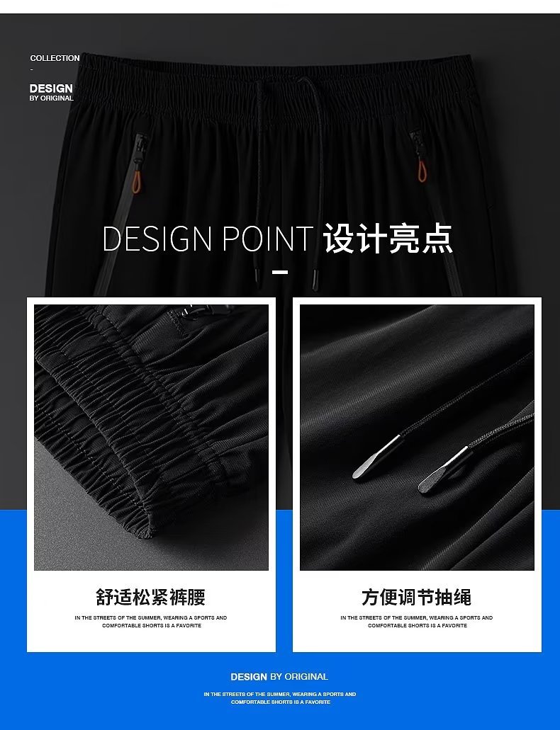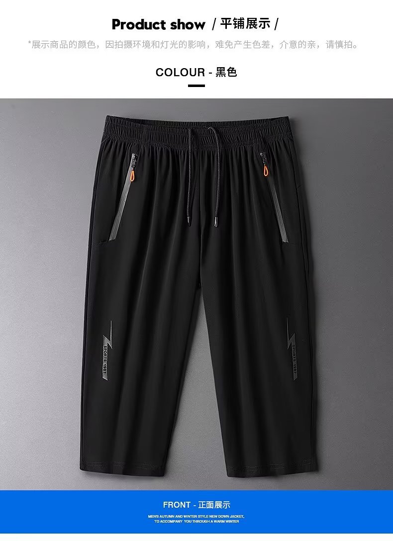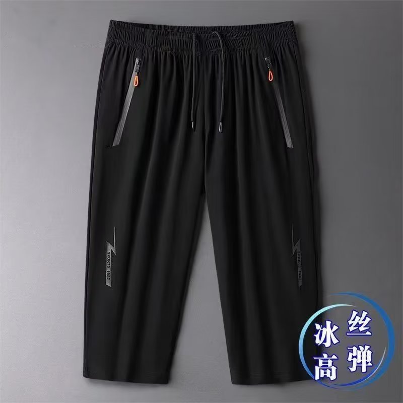 남성용 크롭 팬츠, 캐주얼 루즈 스포츠 반바지, 여름용 가볍고 신축성 있는 통기성 런닝 팬츠, 나일론 아이스 실크 고탄성스토어 가기