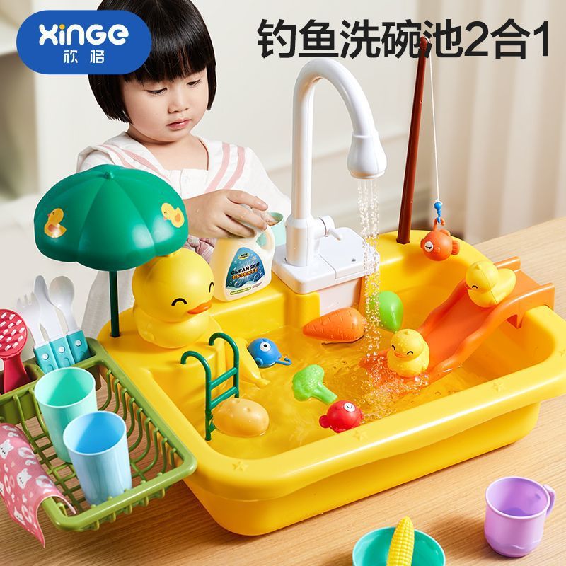 어린이 식기 세척기 싱크 도구 놀이 집 장난감 소녀 주방 시뮬레이션 전기 세척 대외 무역 도매스토어 가기