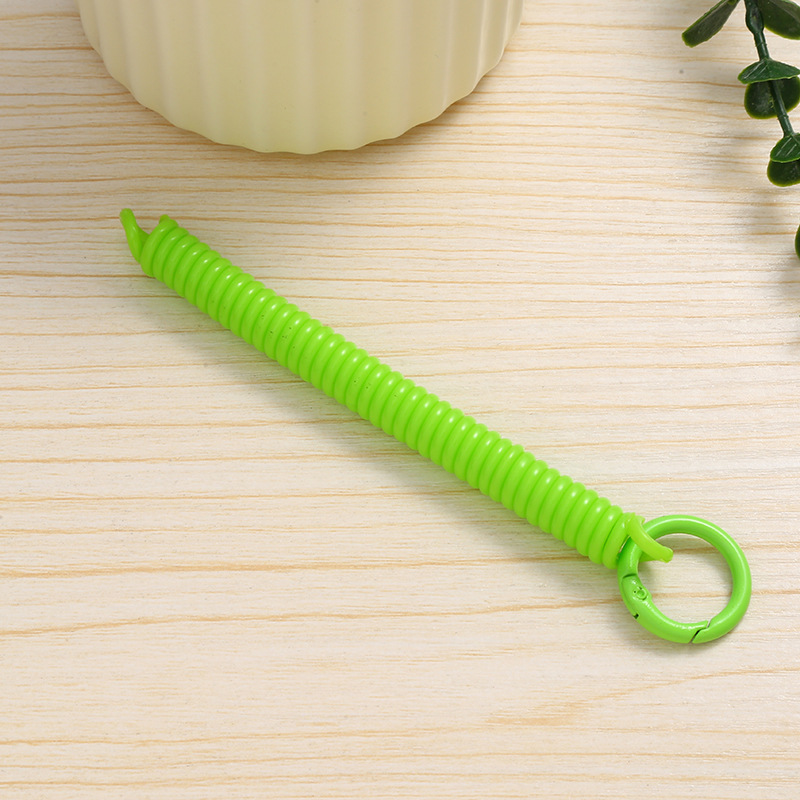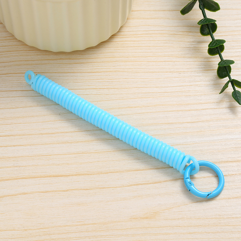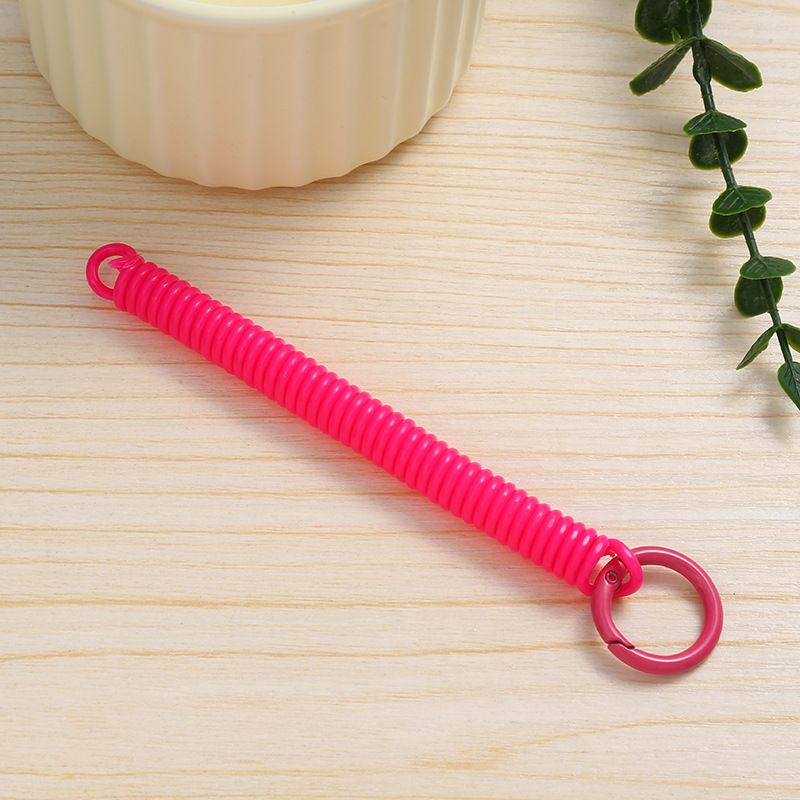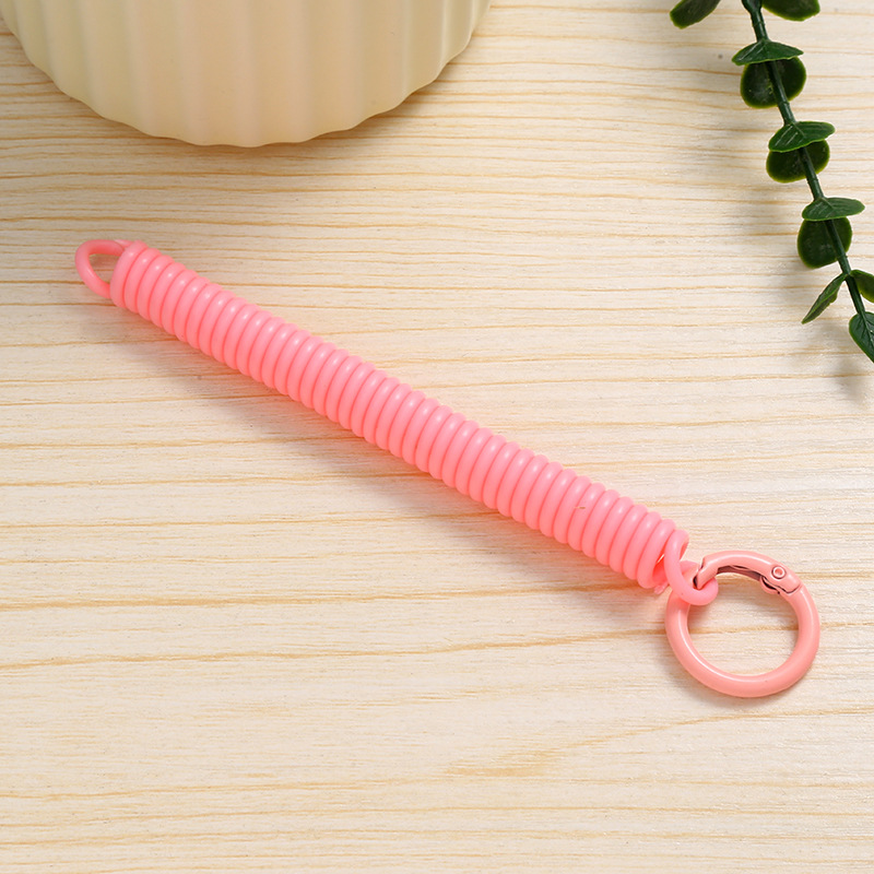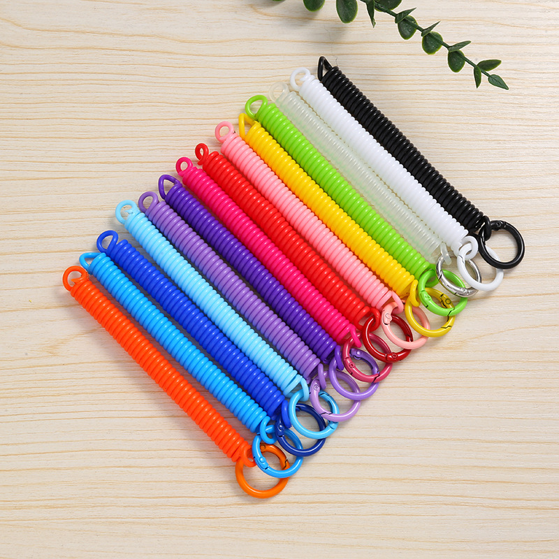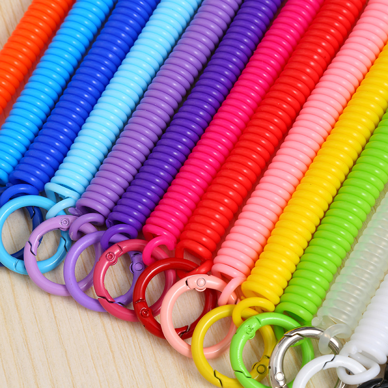 공장 직접 판매 캔디 컬러 플라스틱 스프링 로프 페인트 키 체인 키 체인 페인트 스프링 버클 카드 홀더 로프 도매스토어 가기