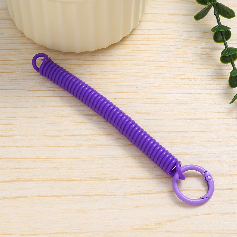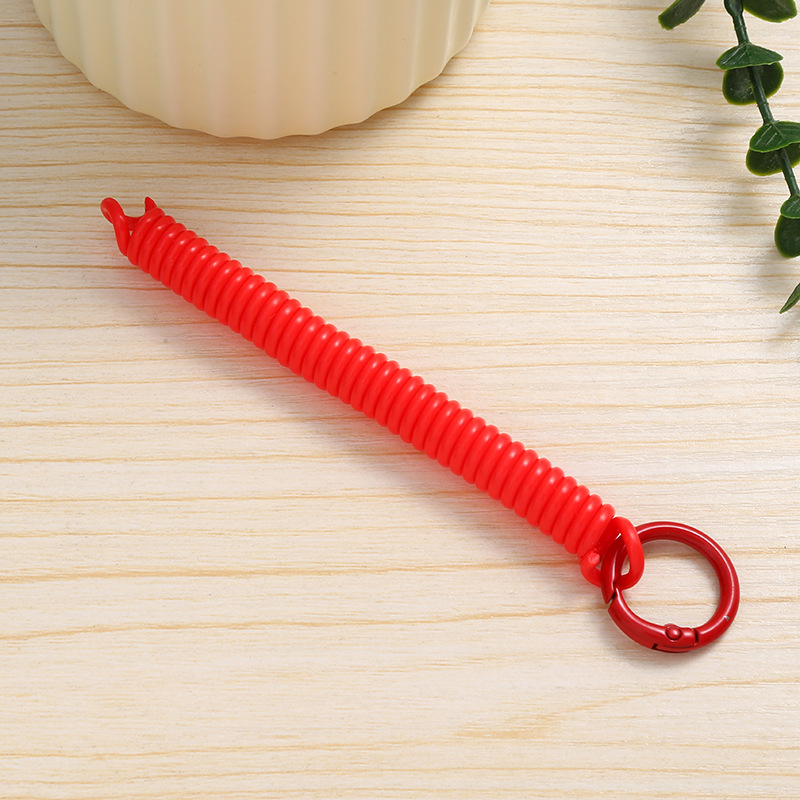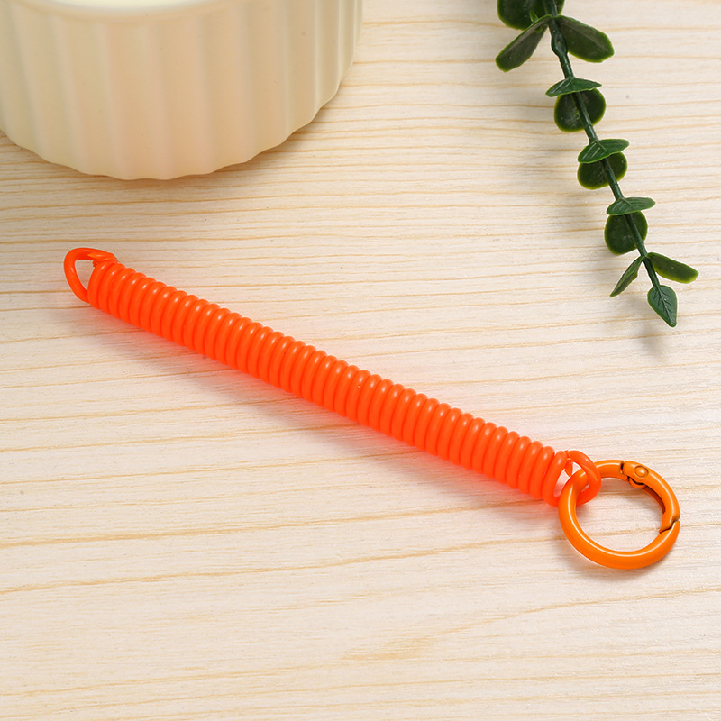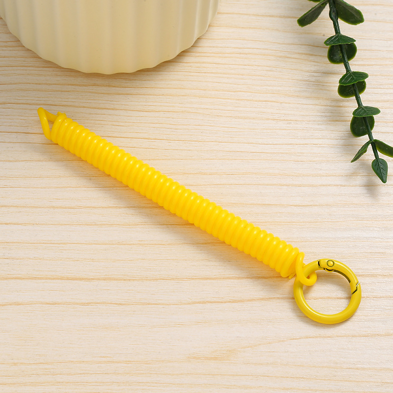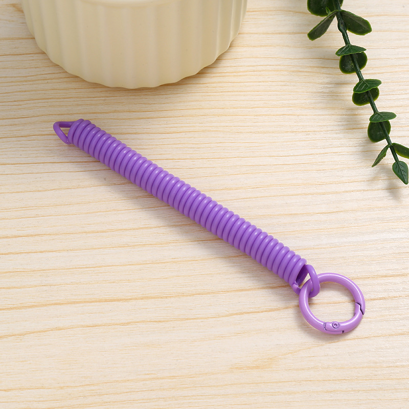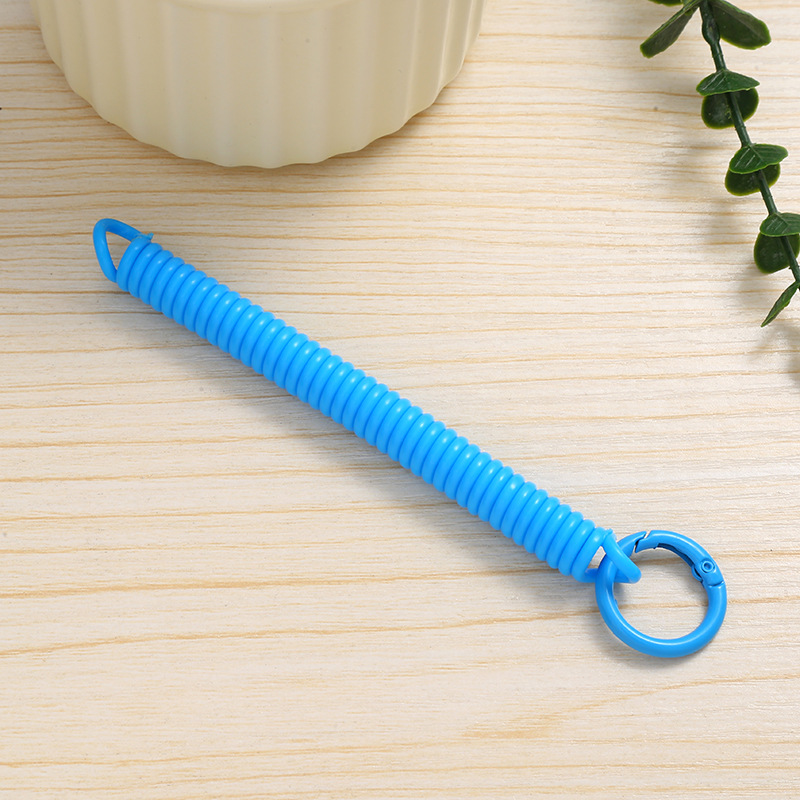 공장 직접 판매 캔디 컬러 플라스틱 스프링 로프 페인트 키 체인 키 체인 페인트 스프링 버클 카드 홀더 로프 도매스토어 가기