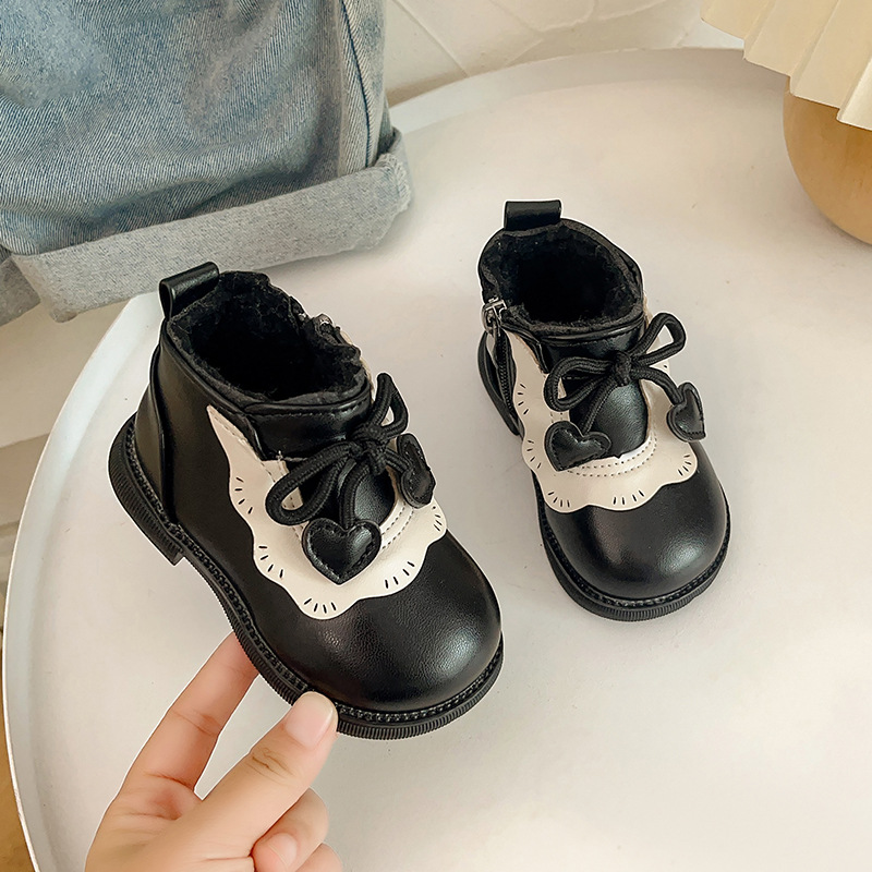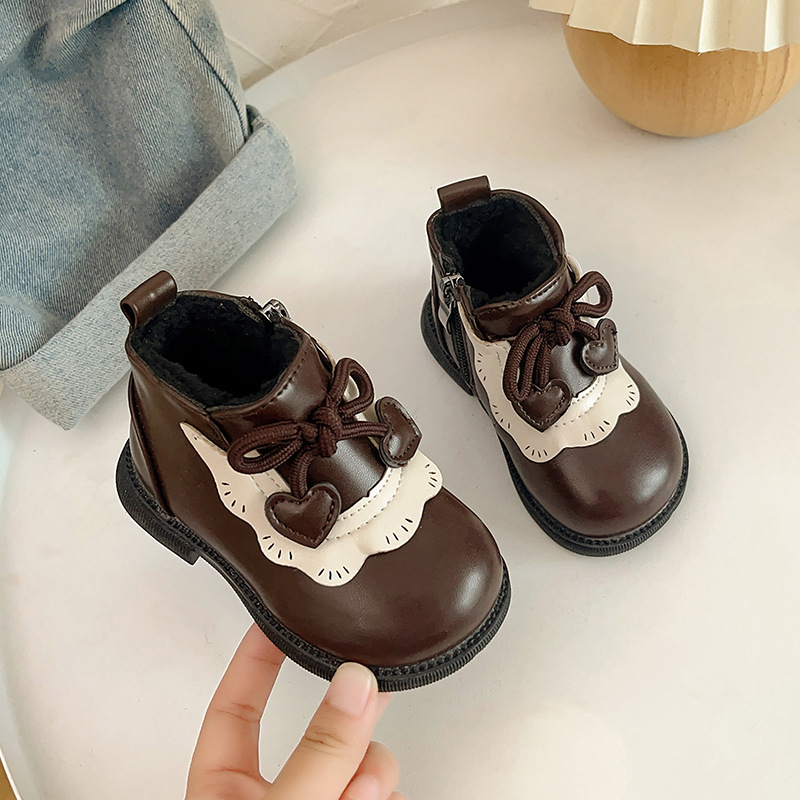 아기 소녀의 작은 가죽 신발, 아기 부드러운 밑창 유아 신발, 공주 면화, 소녀를위한 겨울 벨벳 짧은 부츠, 활