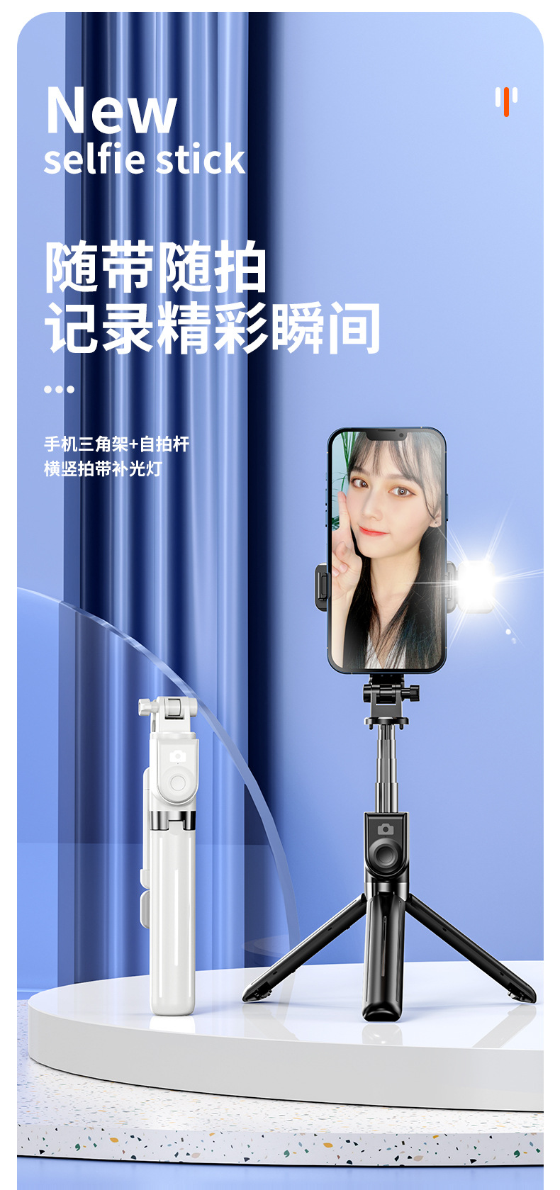 블루투스 셀카봉, 데스크탑 라이브 방송용 일체형, 확장형 휴대폰 거치대, 보조 조명등이 포함된 신형 도매 제품스토어 가기
