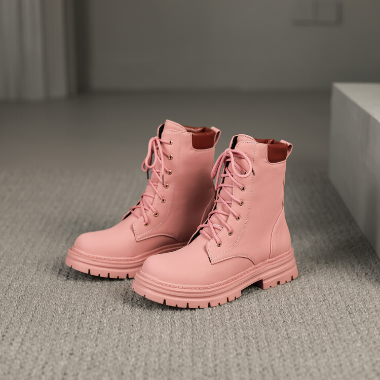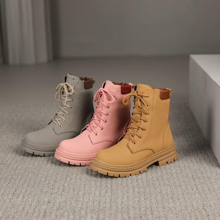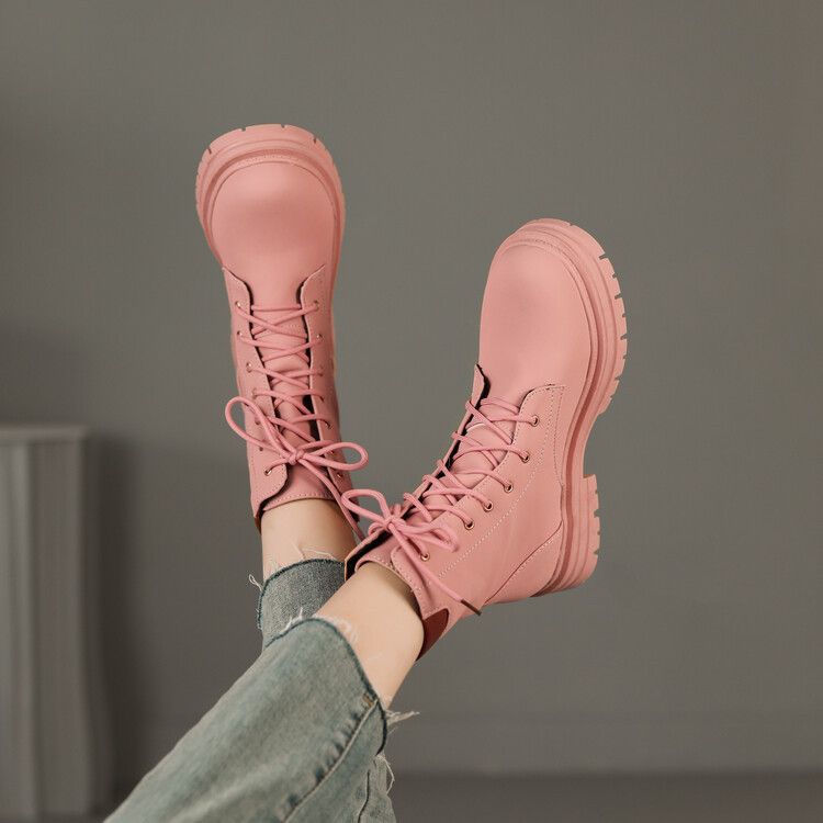 가을 겨울 복고풍 라운드 발가락 두꺼운 밑창 마틴 부츠 여성 빅 레드 부츠 짧은 부츠 대형 40-43 사이즈스토어 가기