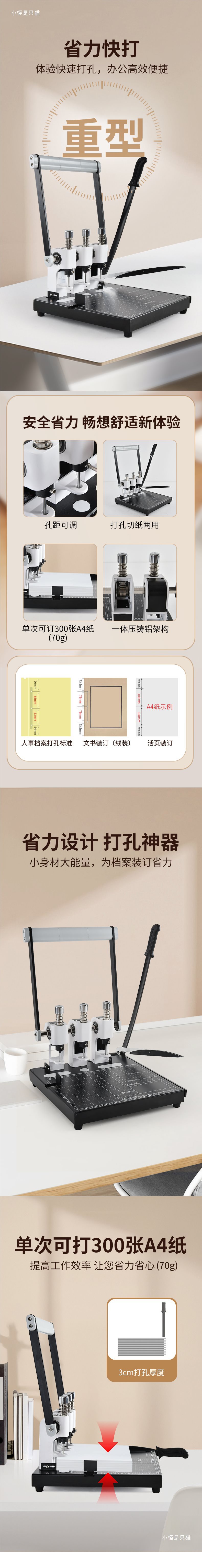 헤비듀티 3홀 펀칭기 A4 중급 인사 파일 제본기 노동 절약형 펀칭 및 종이 절단 일체형 기계 300페이지스토어 가기