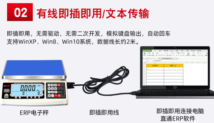 • 50kg/1g USB 플러그 앤 플레이 텍스트 출력