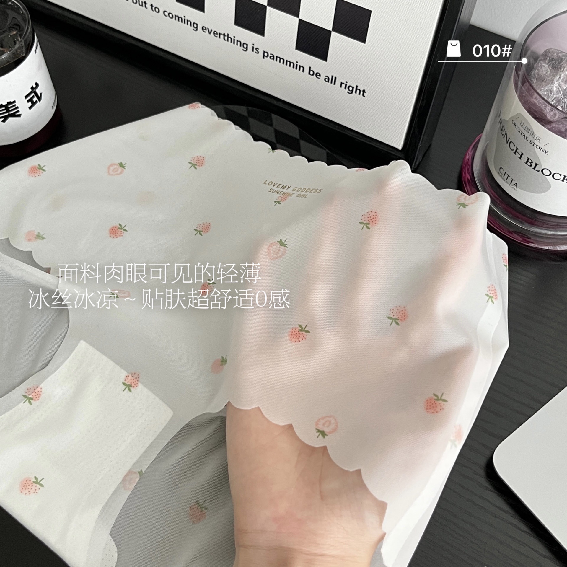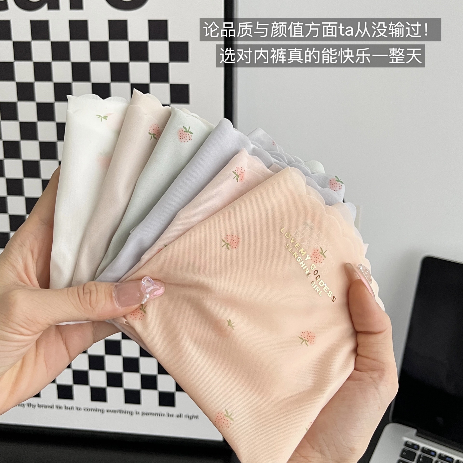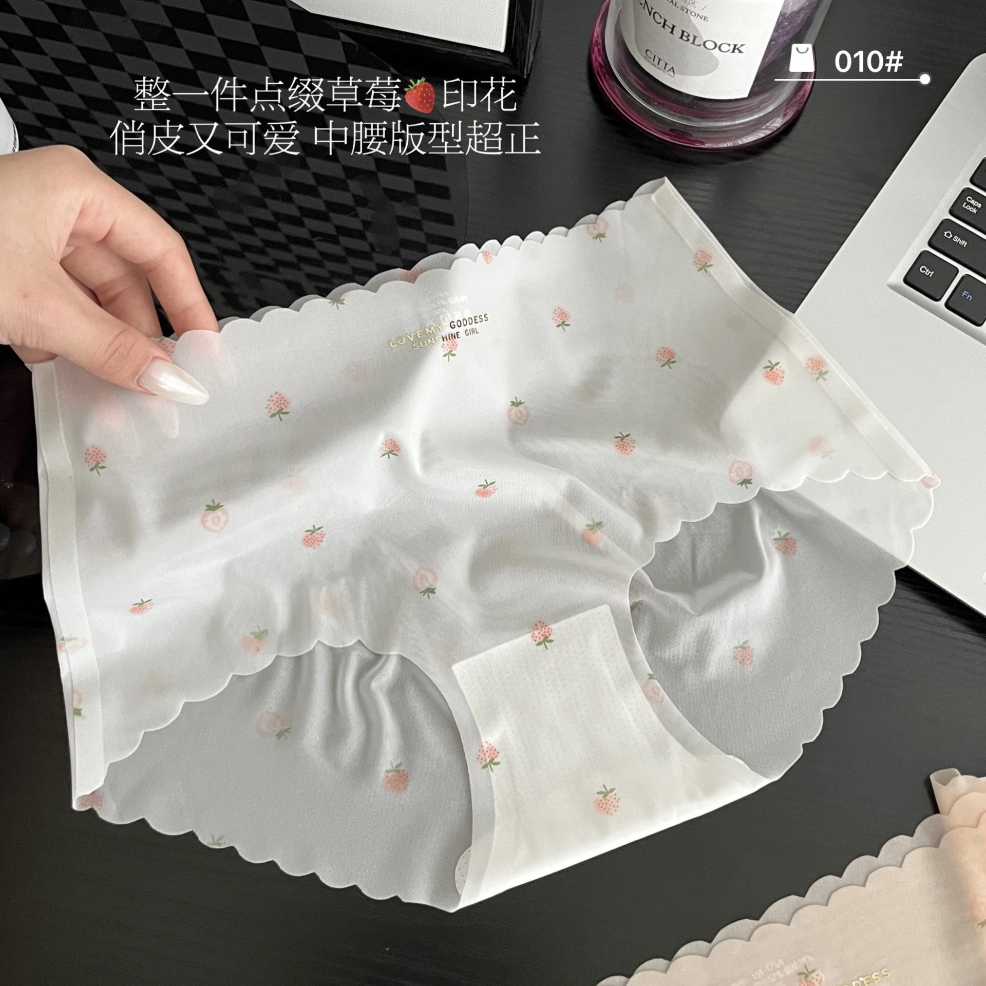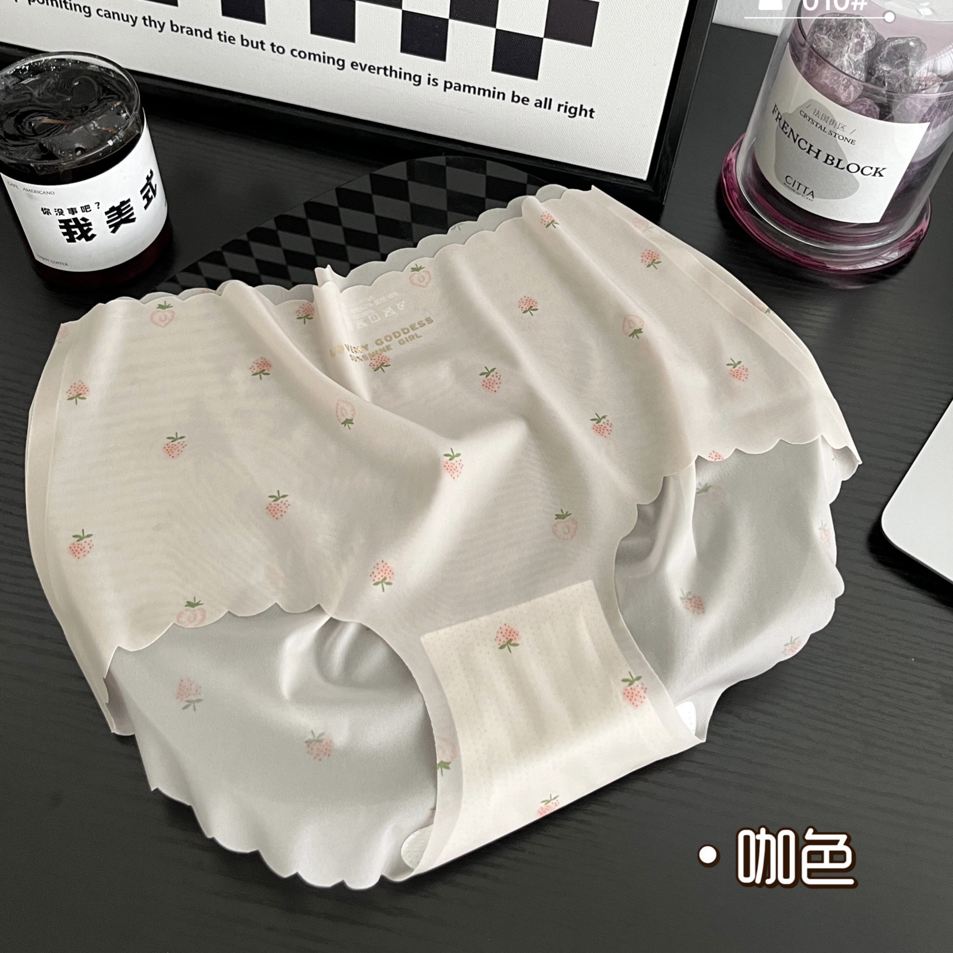 소녀들을 위한 초박형 얼음 실크 딸기 속옷, 달콤하고 귀여운 여름, 매끄럽고 편안하며 통기성이 뛰어난 여성용 중간 허리 팬티스토어 가기