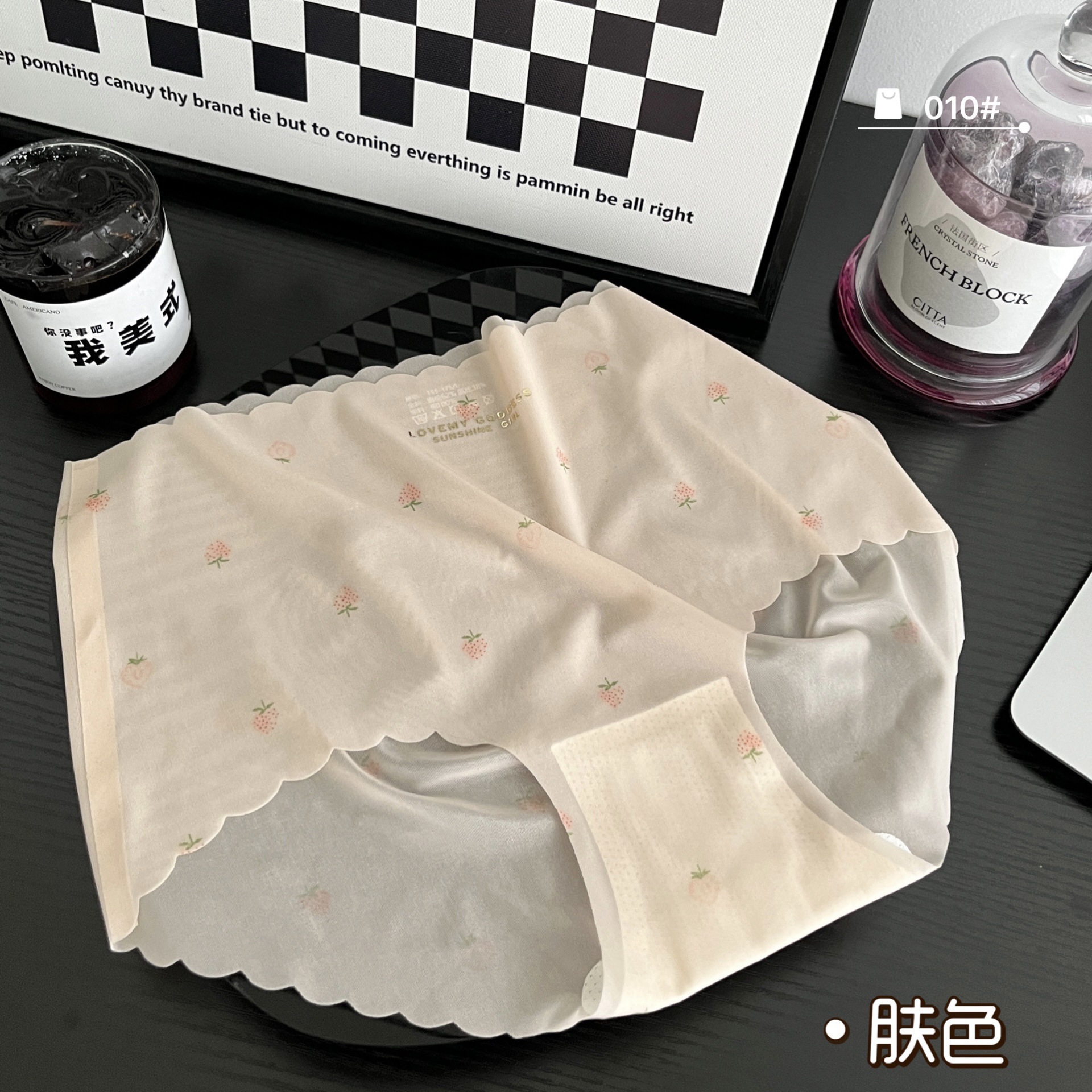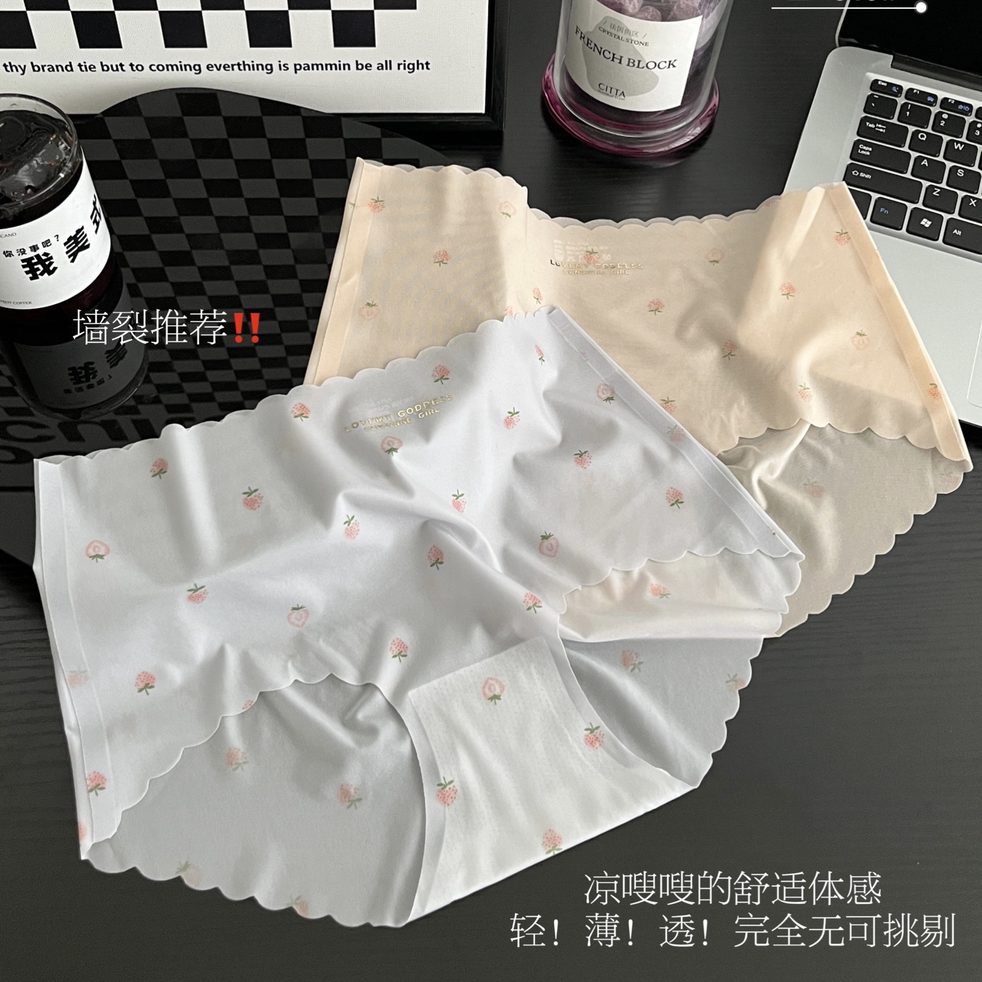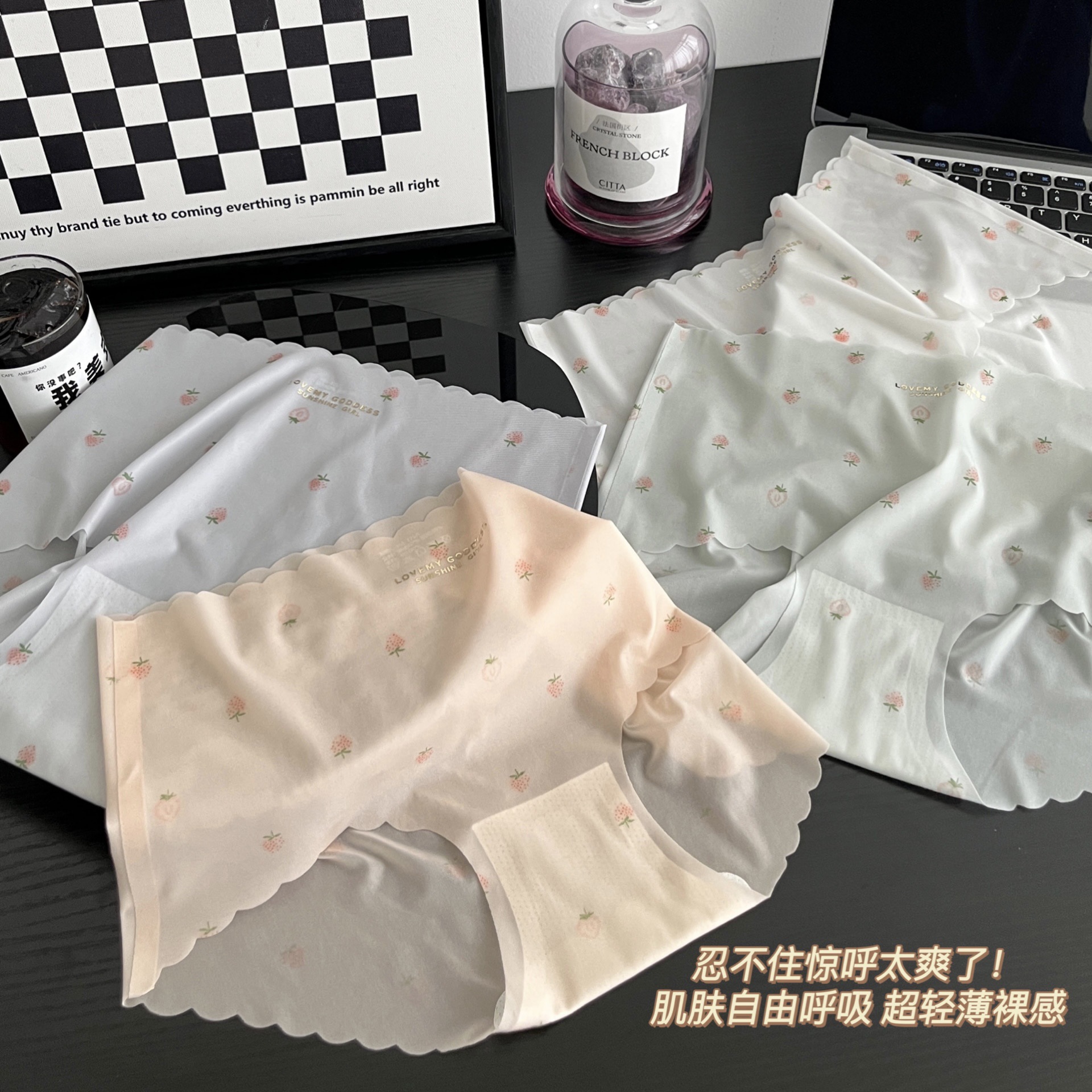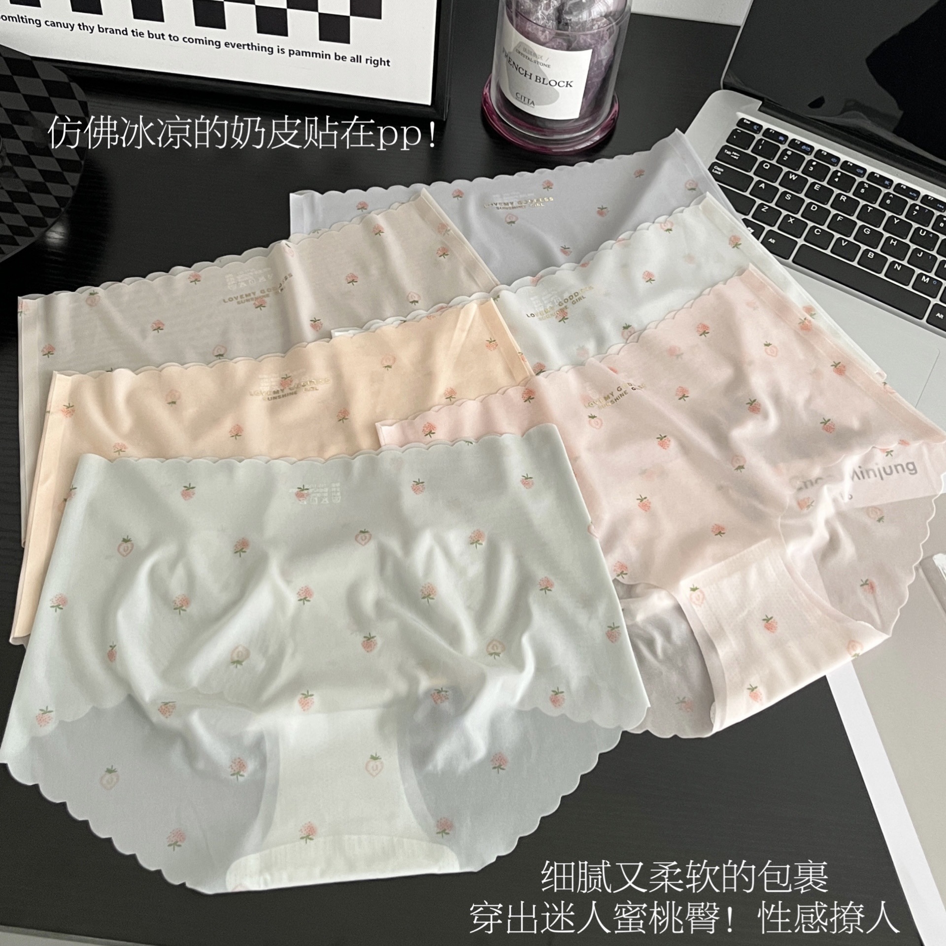 소녀들을 위한 초박형 얼음 실크 딸기 속옷, 달콤하고 귀여운 여름, 매끄럽고 편안하며 통기성이 뛰어난 여성용 중간 허리 팬티스토어 가기