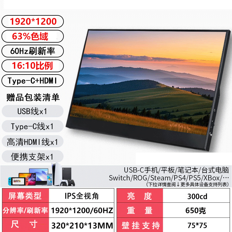 15.6 휴대용 디스플레이 2.5K 노트북 확장 보조 화면 스위치/XBOX/xss 분할 화면 프로젝션