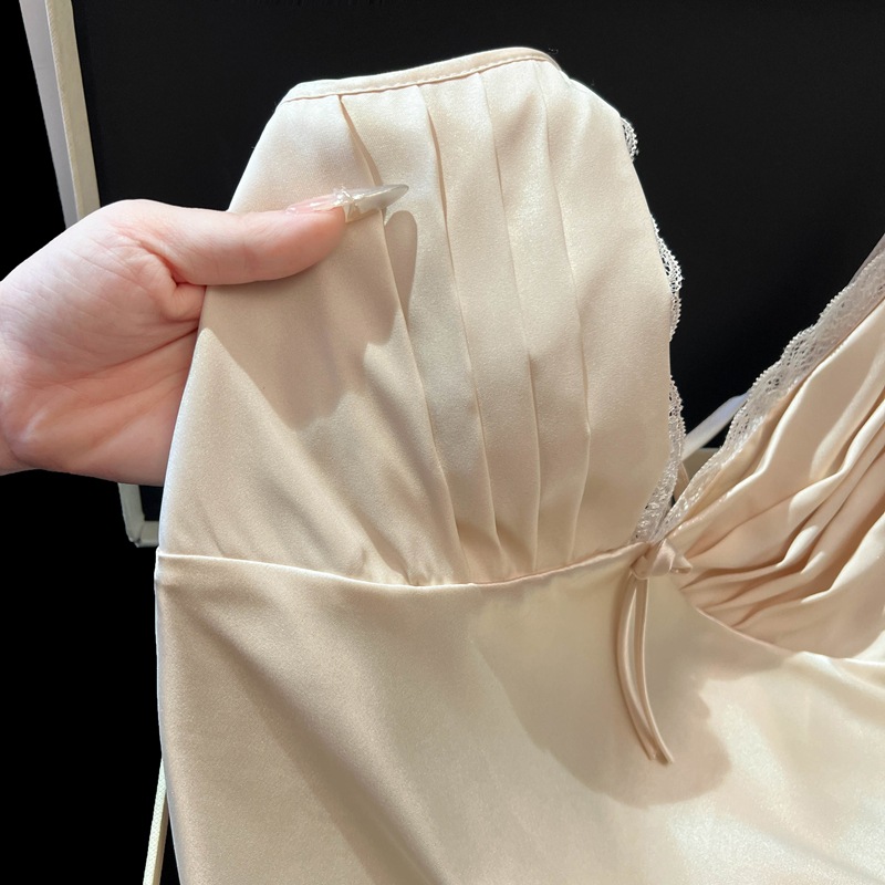 여성을위한 프랑스 고급 새틴 얼음 실크 순수한 욕망 스타일 서스펜더 잠옷 여름 시원한 홈웨어 대형 세트 겉옷스토어 가기