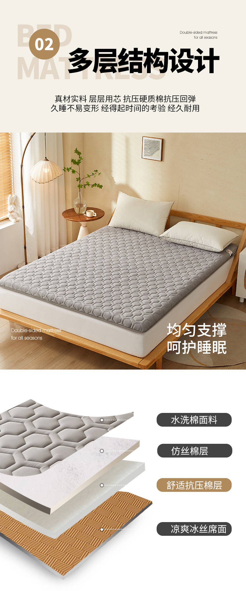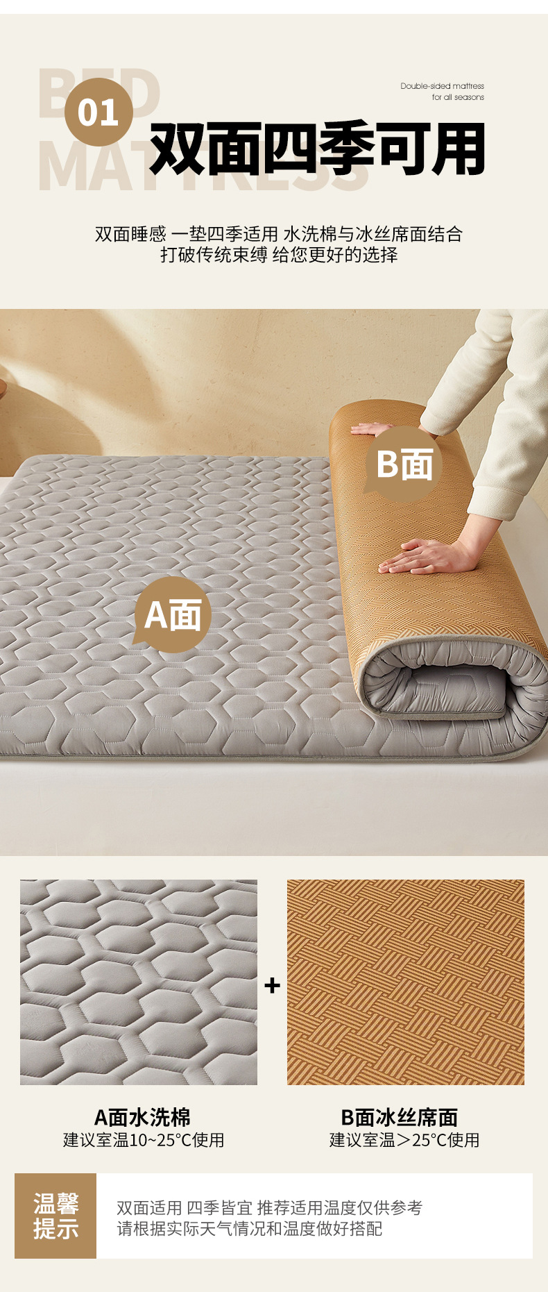 등나무매트리스 양면매트리 커버, 학생기숙사용 부드러운 쿠션, 싱글 및 더블 임대용 특수매트리, 겨울 및 여름용 수면매트