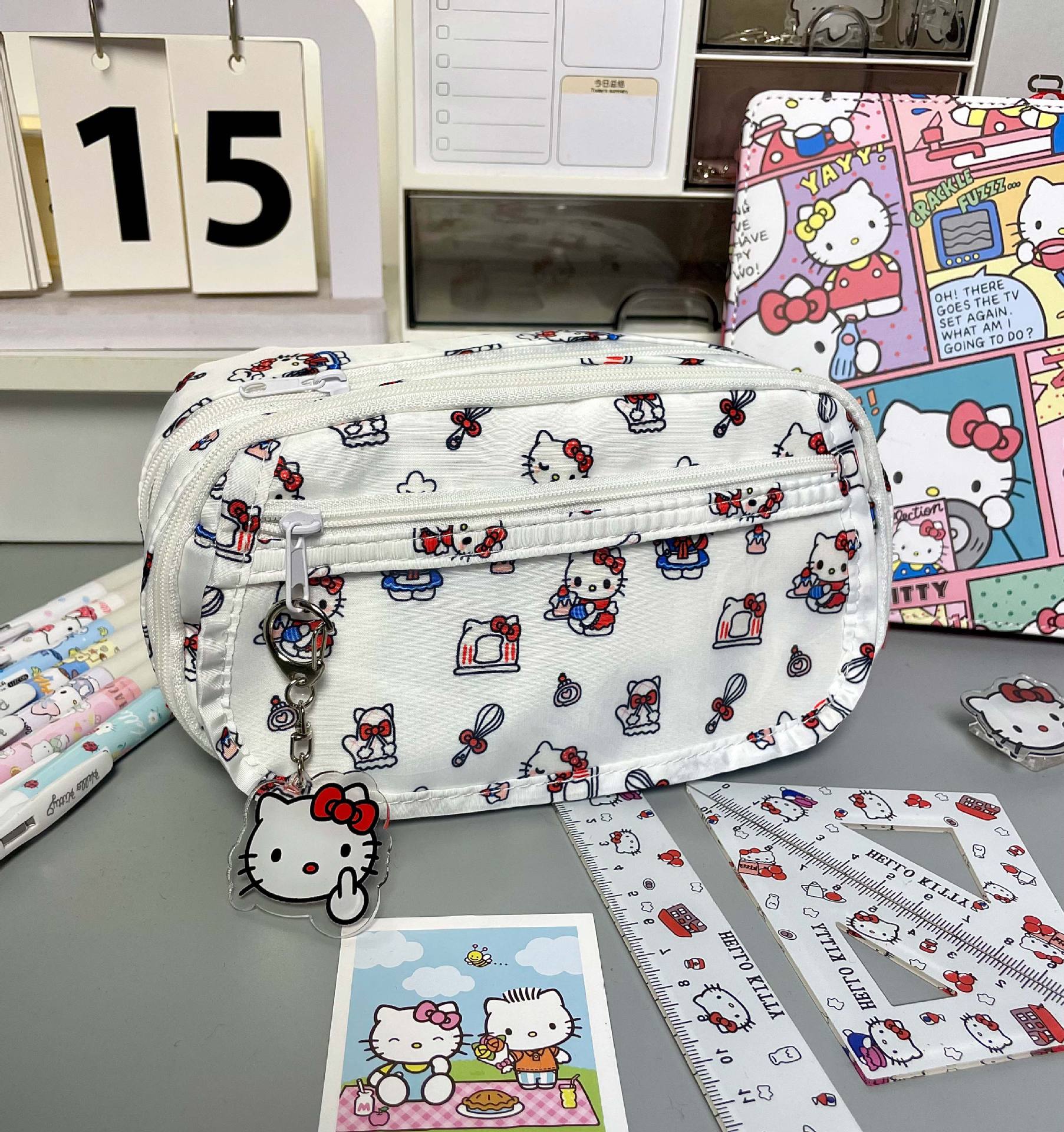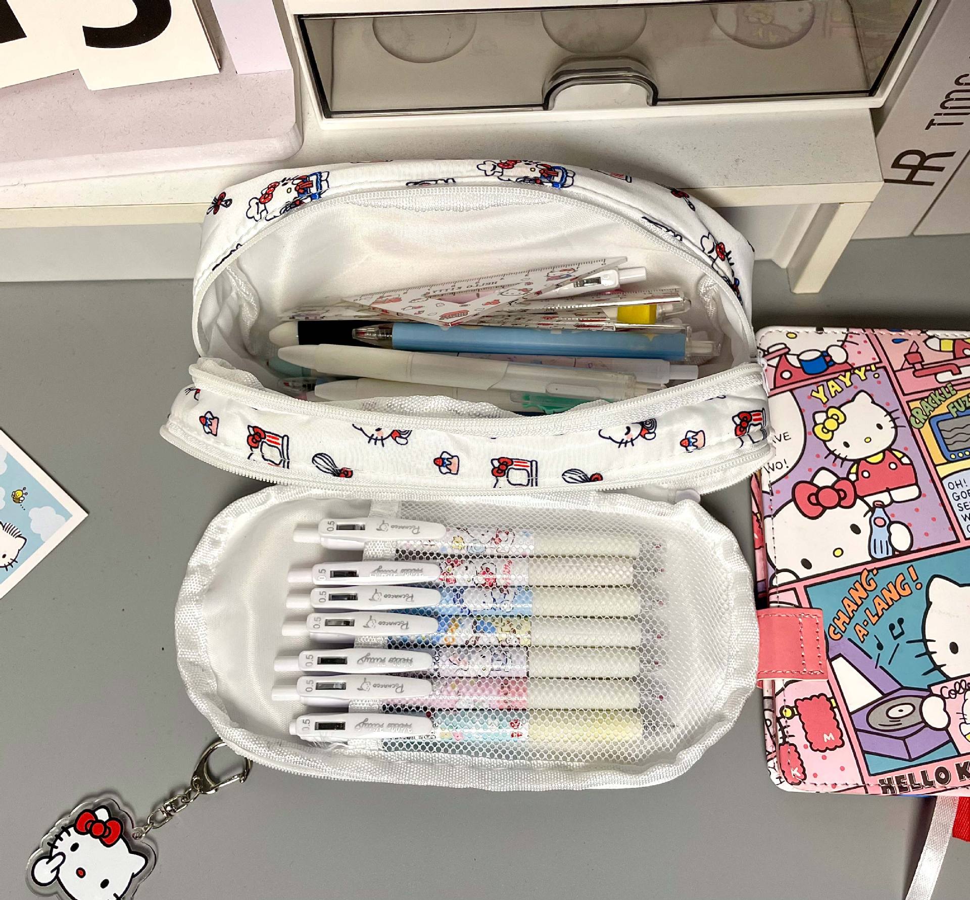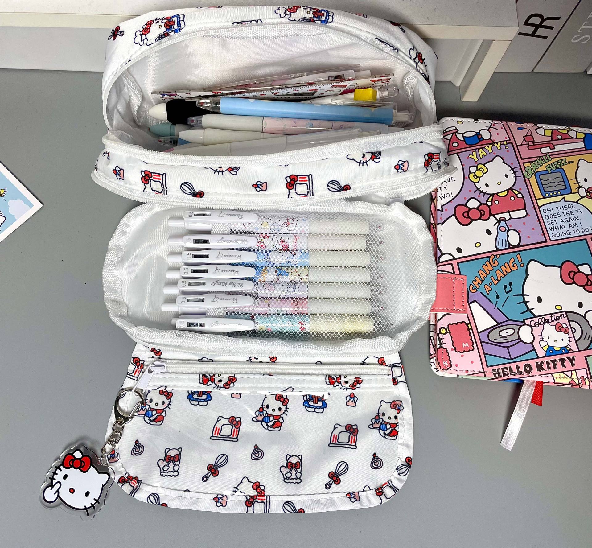 Ins 비주얼 창 고급스러운 헬로 키티 통증 가방 연필 가방 다층 대용량 학생 문구 가방 보관 가방