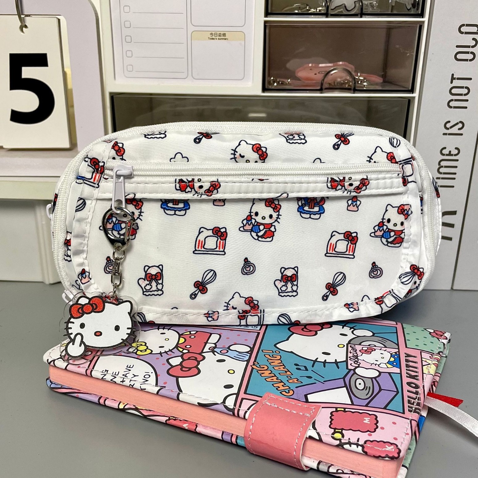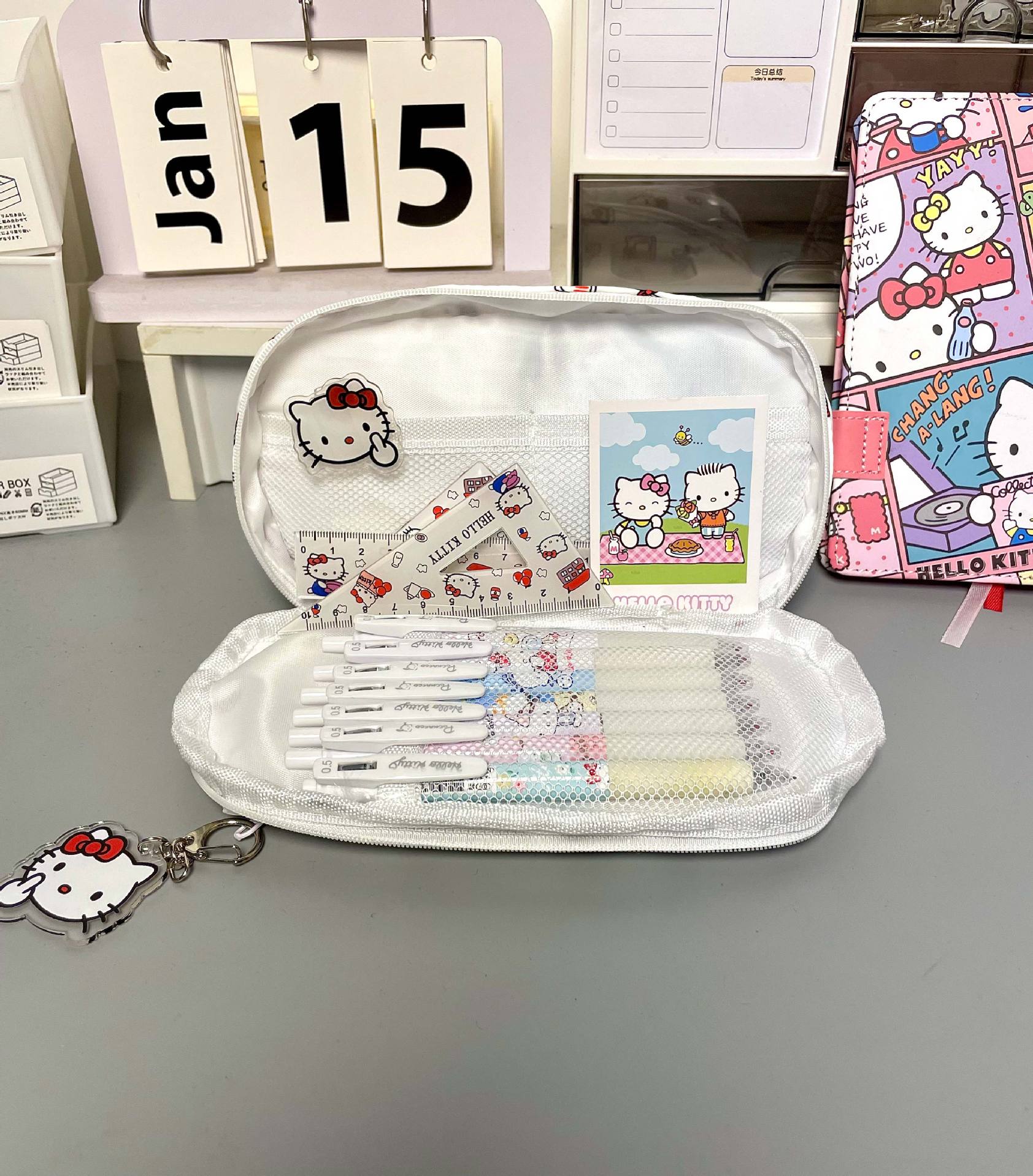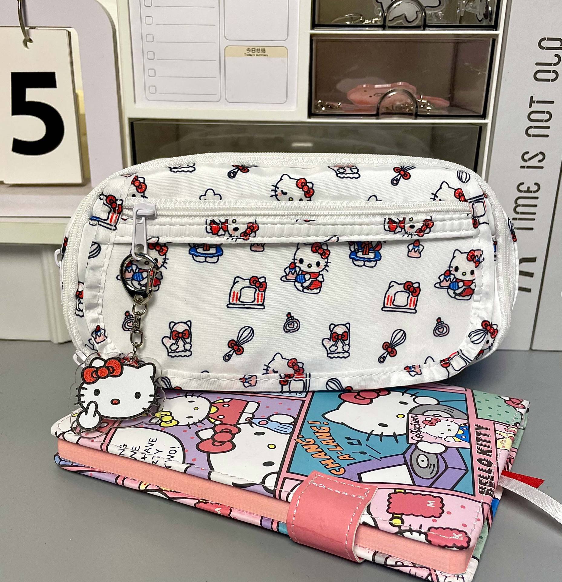 Ins 비주얼 창 고급스러운 헬로 키티 통증 가방 연필 가방 다층 대용량 학생 문구 가방 보관 가방
