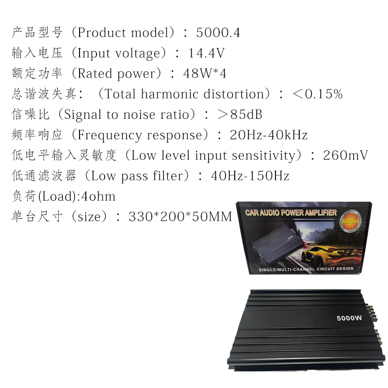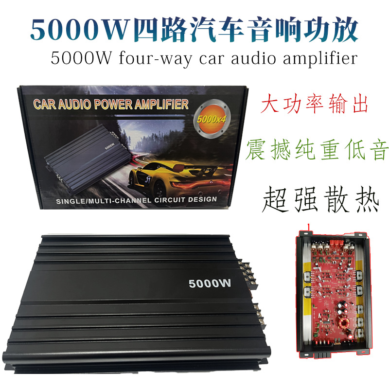 제조업체 자동차 오디오 4방향 4채널 고출력 5000W 자동차 전력 증폭기 12V 오디오 수정 서브우퍼