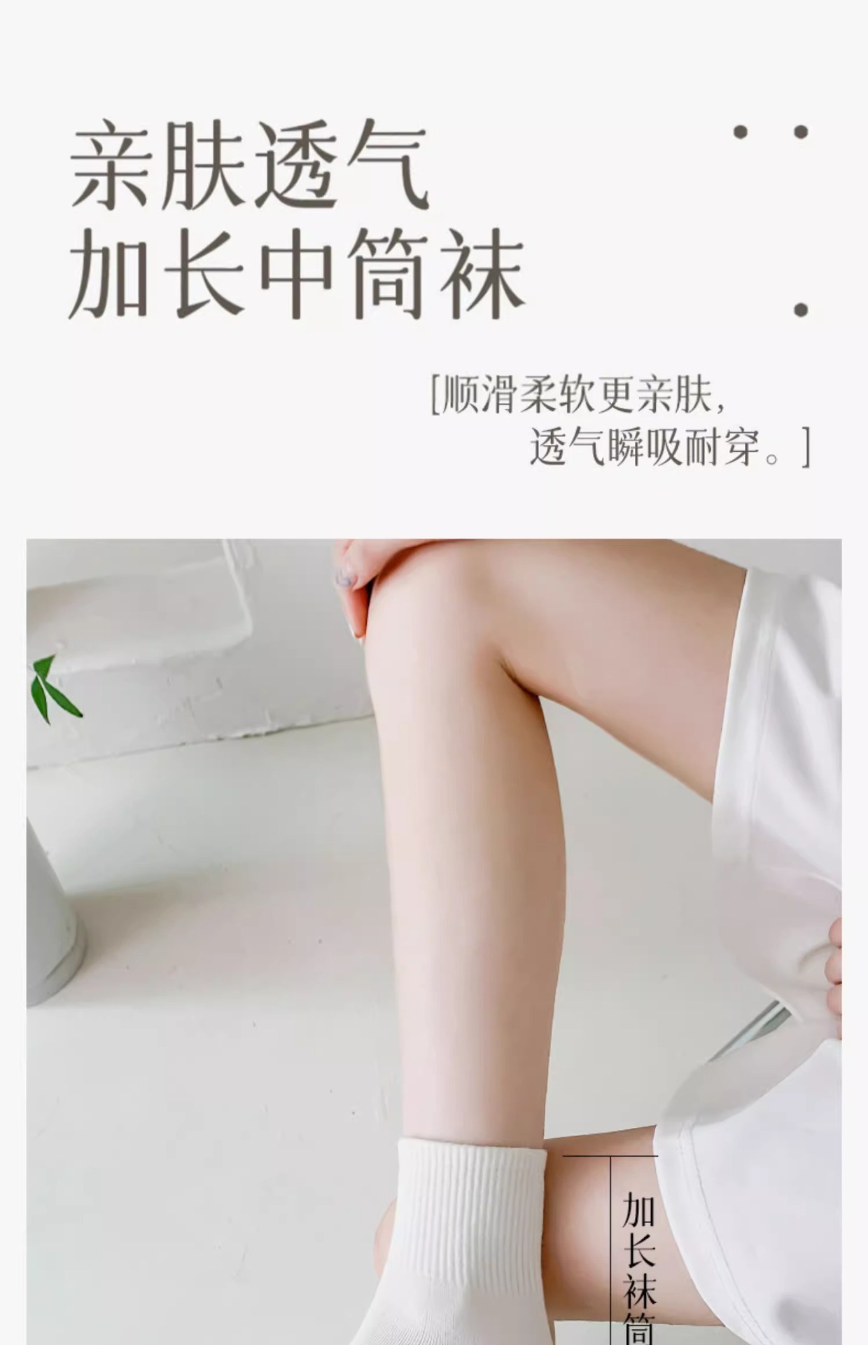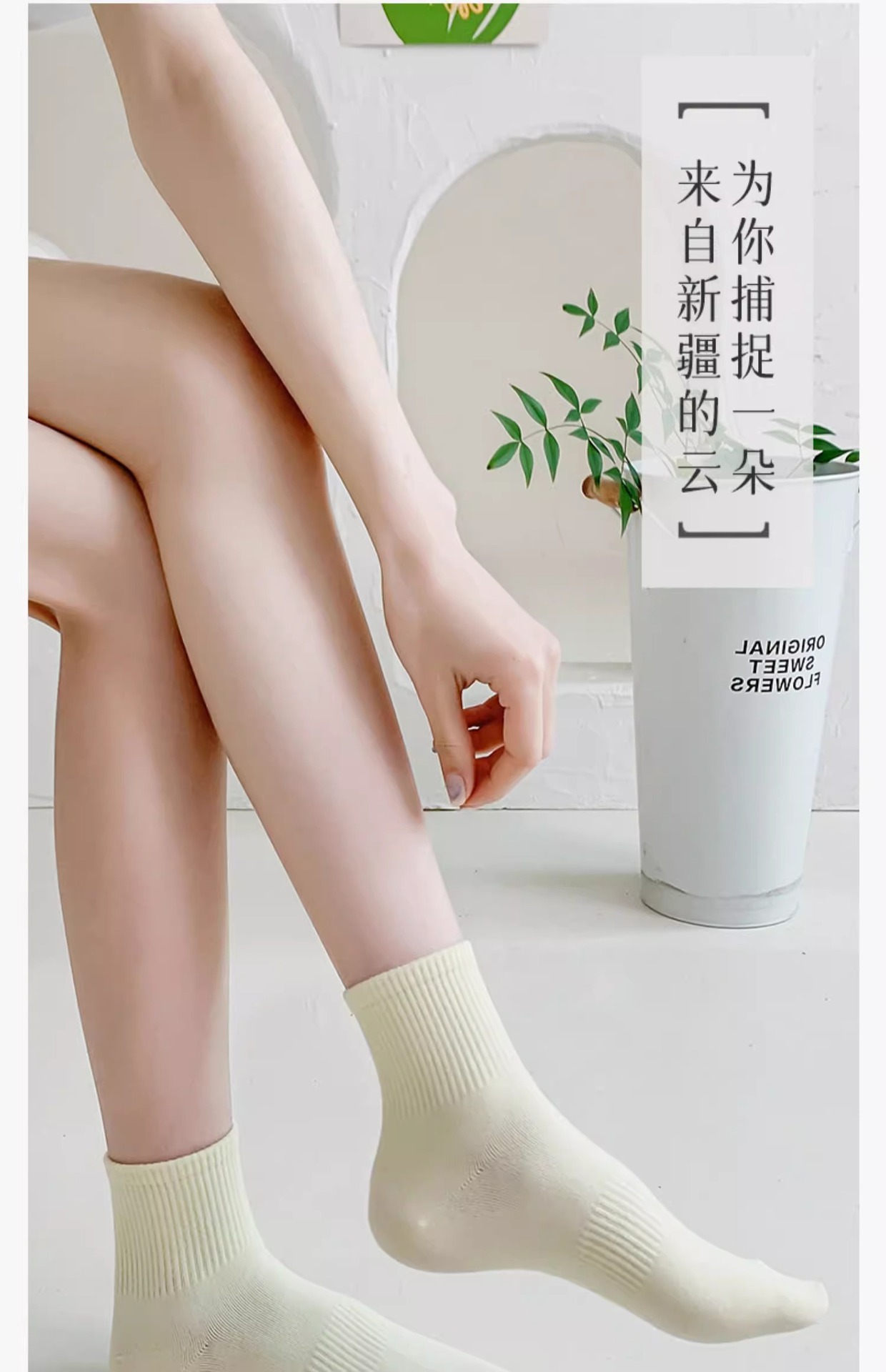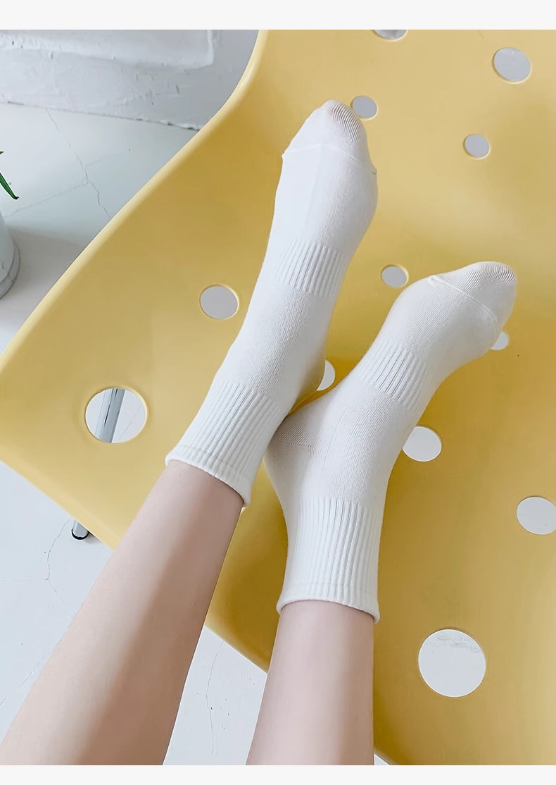 여성용 양말 봄, 가을 순면 종아리 양말 면 양말 항균 및 탈취제 면 양말 스포츠 화이트 여성용 뼈없는 양말