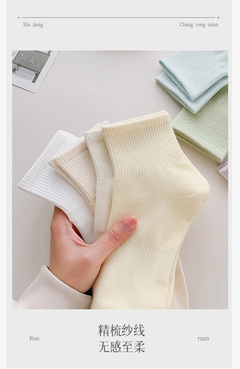 여성용 양말 봄, 가을 순면 종아리 양말 면 양말 항균 및 탈취제 면 양말 스포츠 화이트 여성용 뼈없는 양말스토어 가기