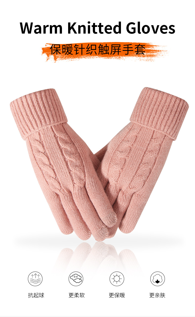 새로운 크로스 보더 겨울 여성 니트 장갑 플러스 벨벳 두꺼운 따뜻한 장갑 야외 사이클링 터치 스크린 장갑