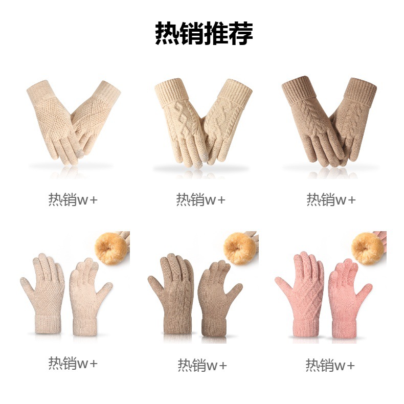 새로운 크로스 보더 겨울 여성 니트 장갑 플러스 벨벳 두꺼운 따뜻한 장갑 야외 사이클링 터치 스크린 장갑스토어 가기