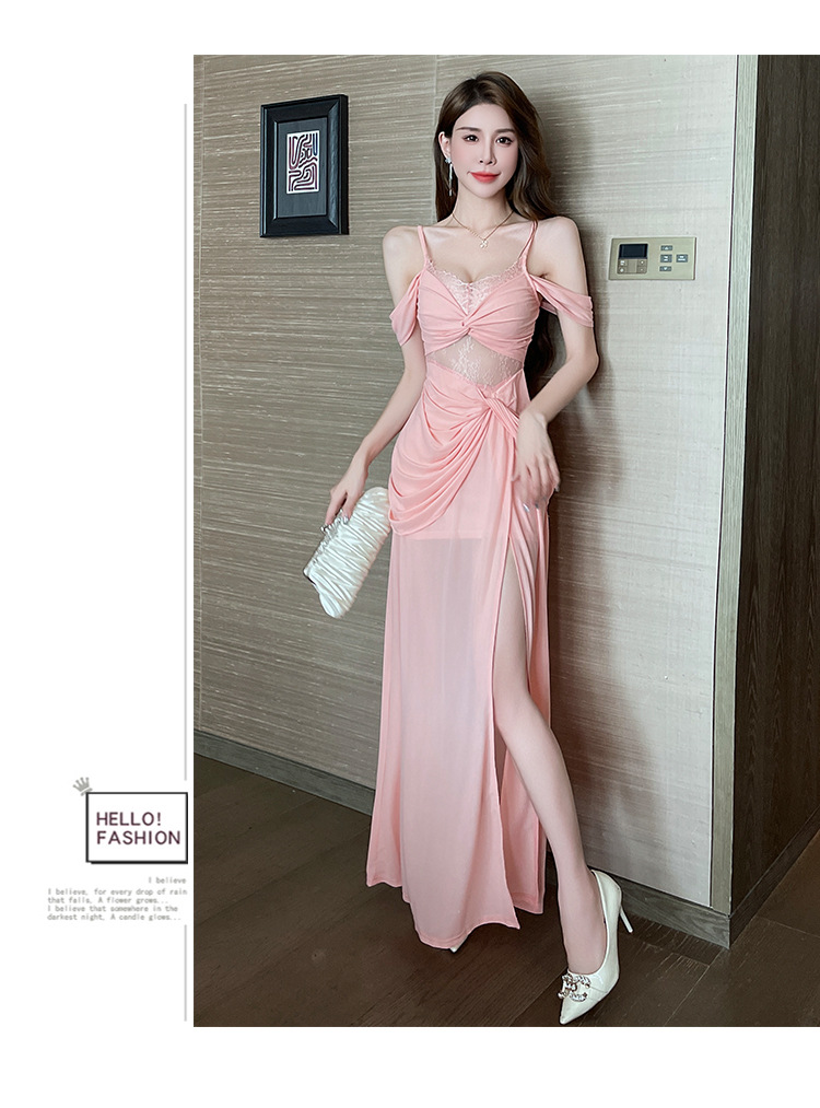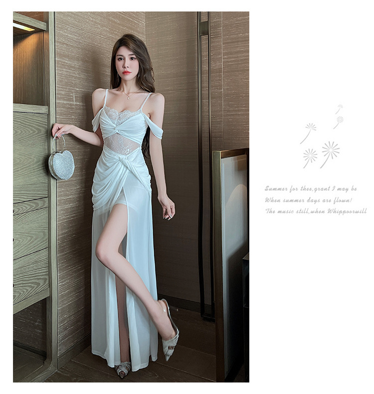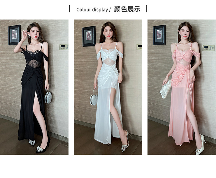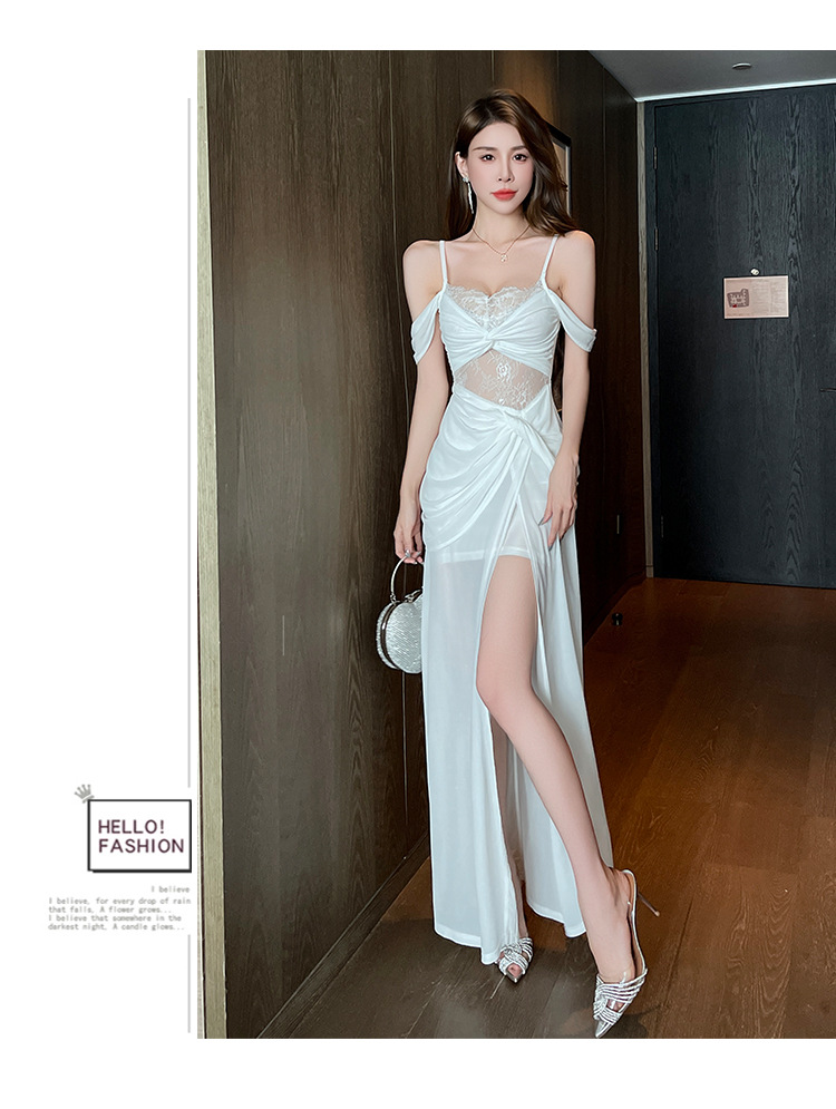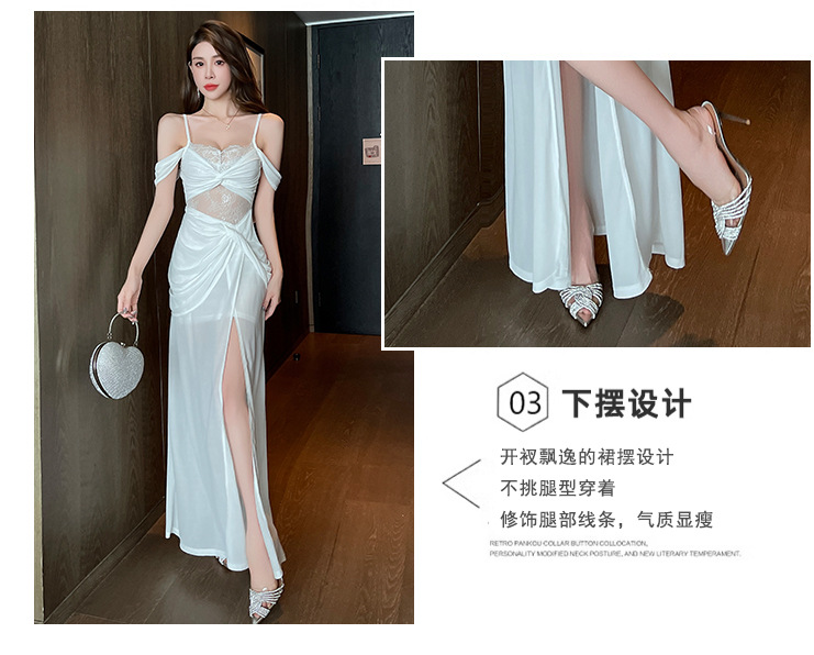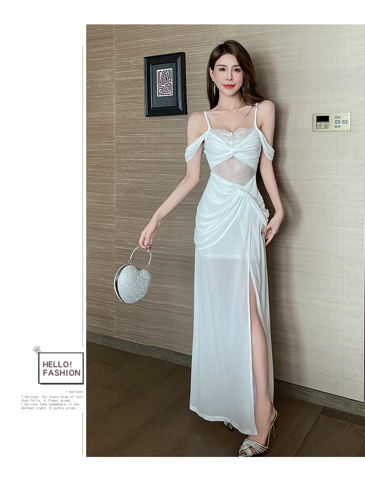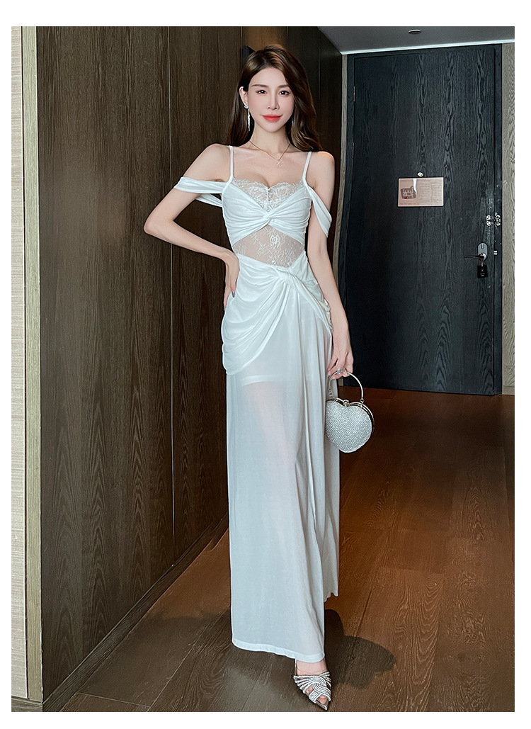 프렌치 니치 젠틀 스타일 중공 레이스 스플라이싱 패션 드레스 순수한 욕망 섹시한 트위스트 스타일 서스펜더 드레스