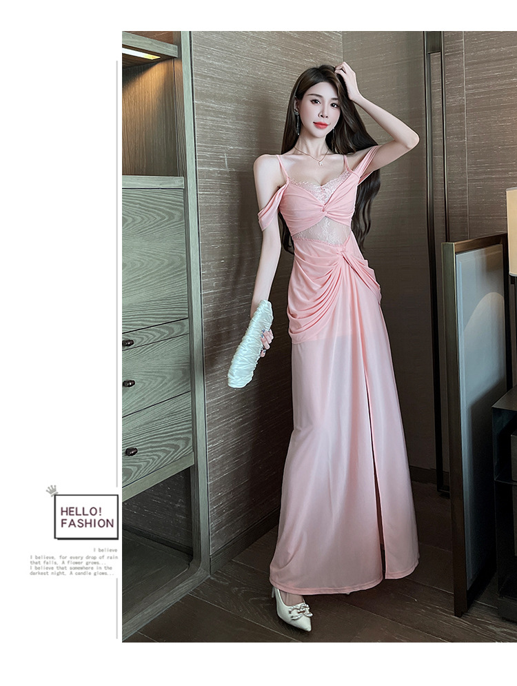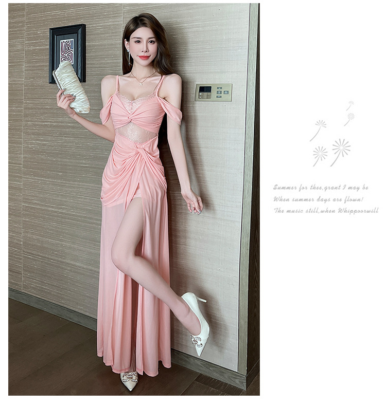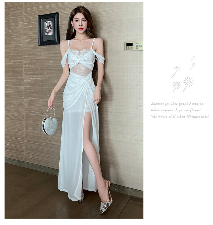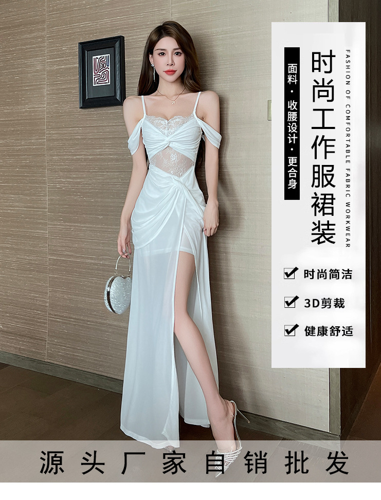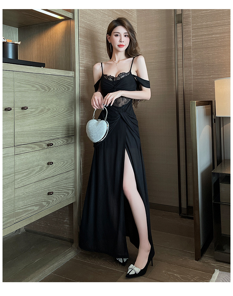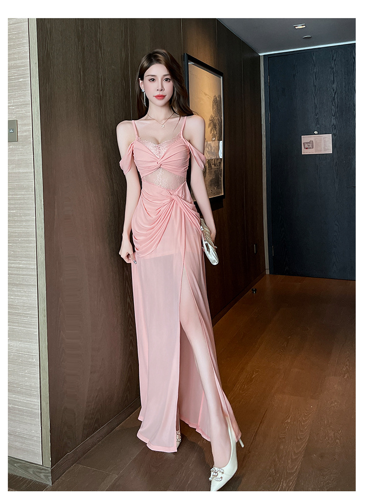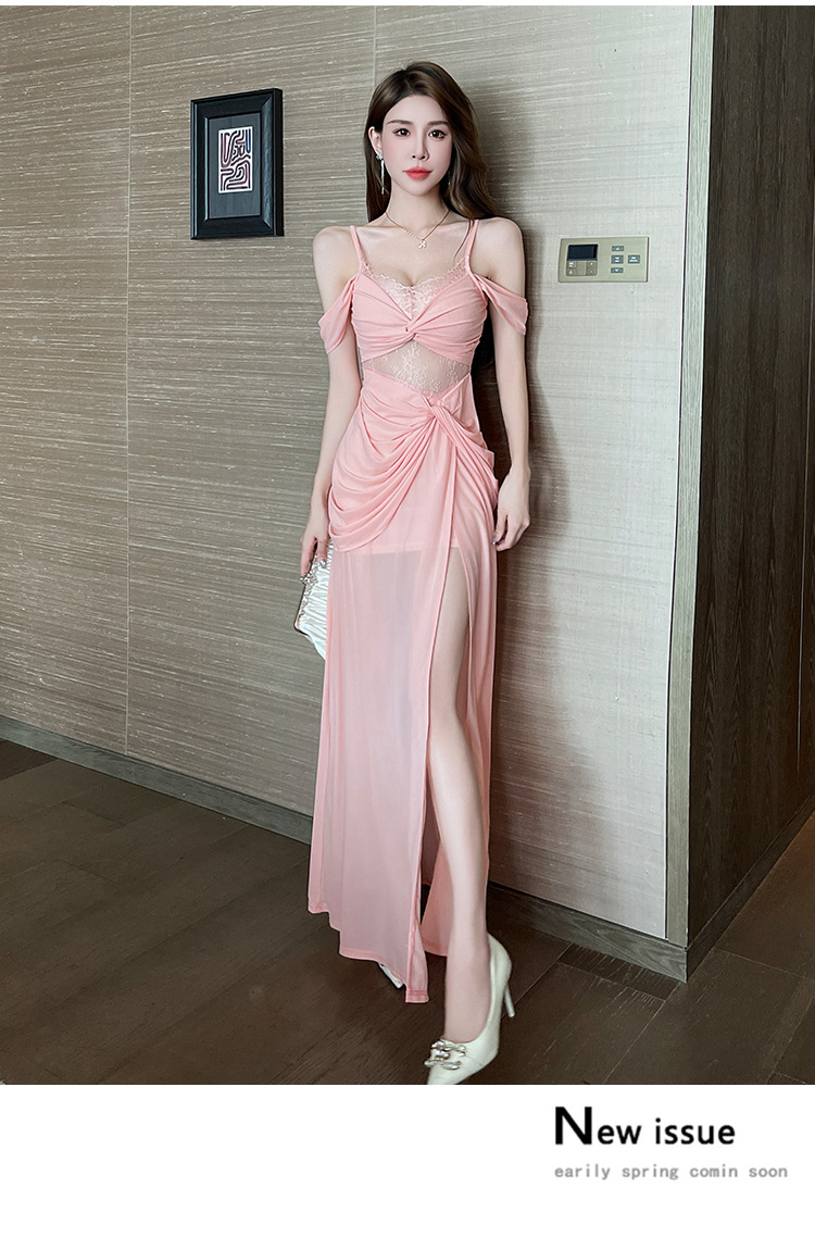 프렌치 니치 젠틀 스타일 중공 레이스 스플라이싱 패션 드레스 순수한 욕망 섹시한 트위스트 스타일 서스펜더 드레스