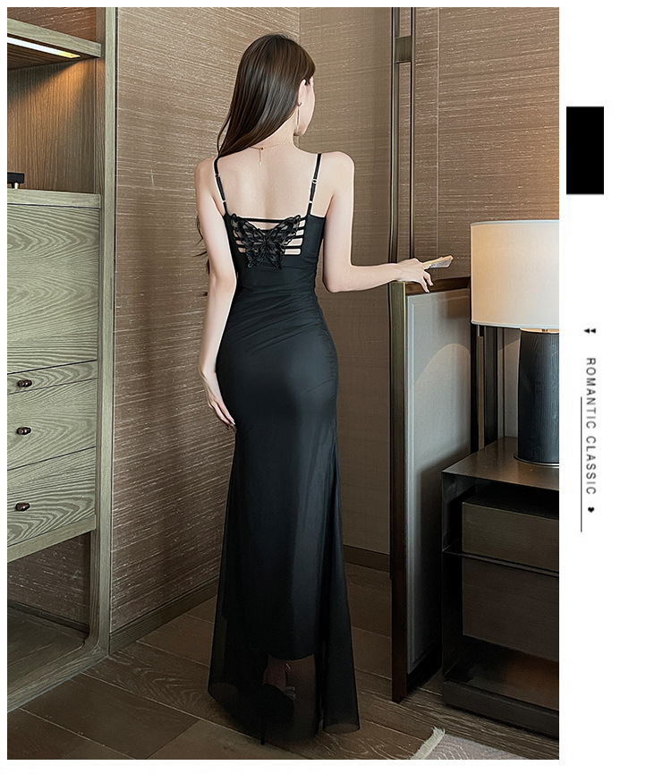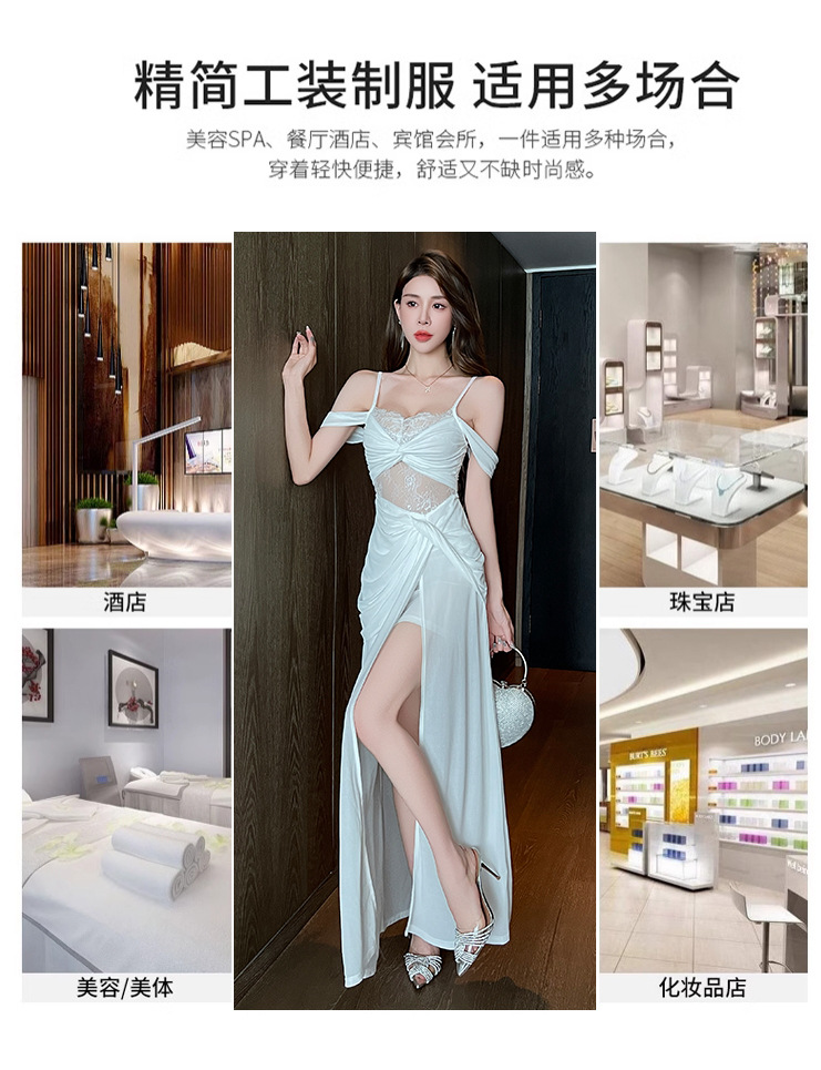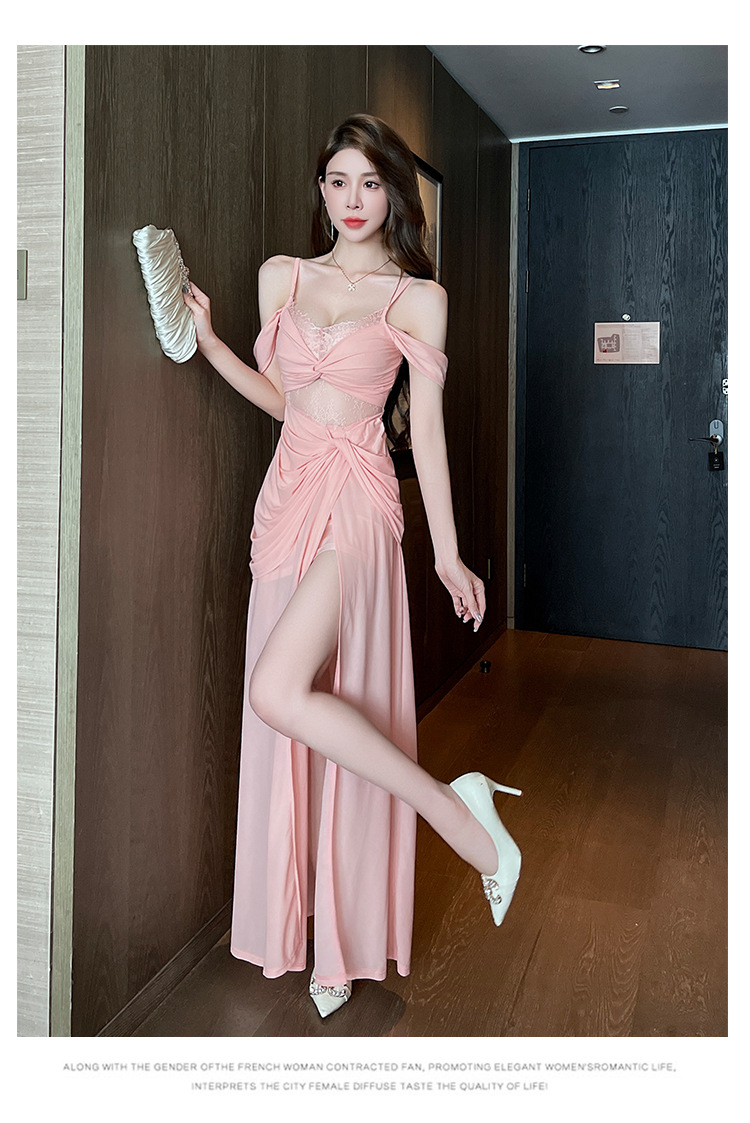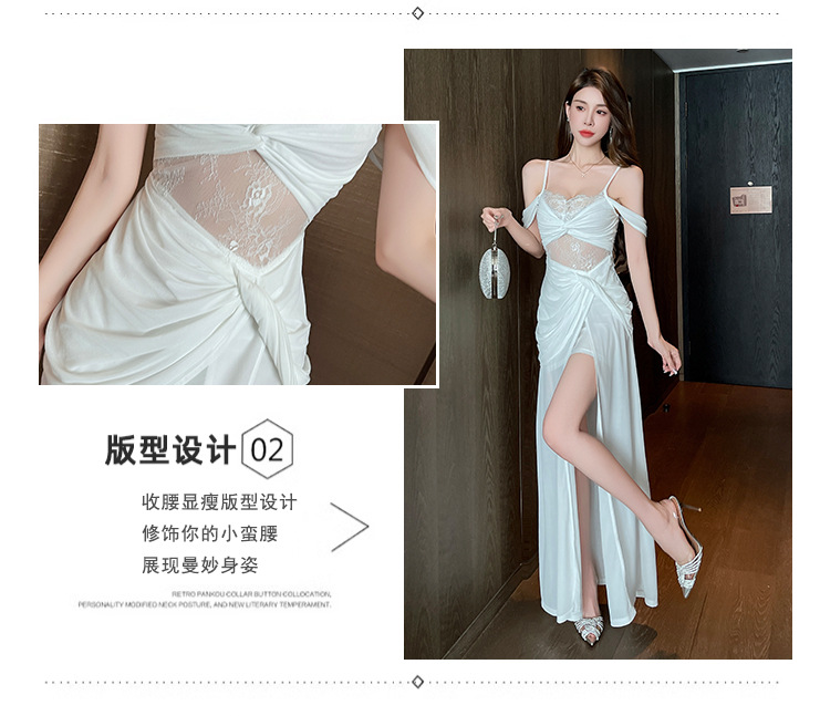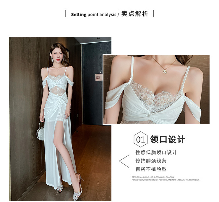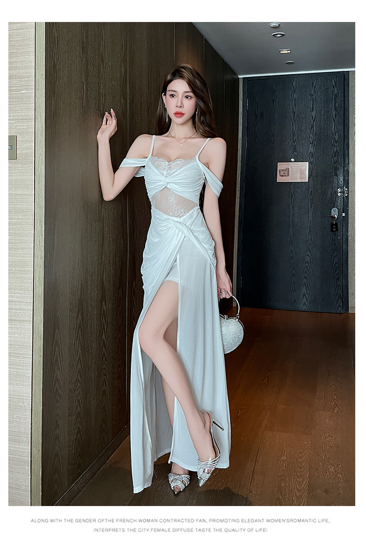 프렌치 니치 젠틀 스타일 중공 레이스 스플라이싱 패션 드레스 순수한 욕망 섹시한 트위스트 스타일 서스펜더 드레스스토어 가기