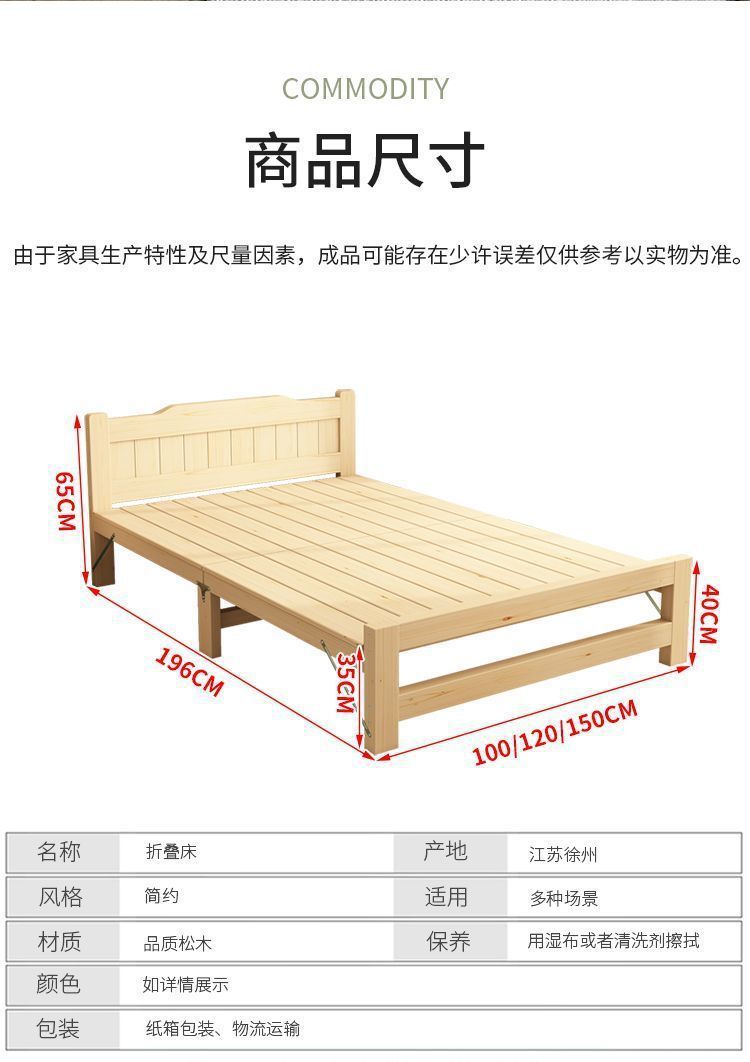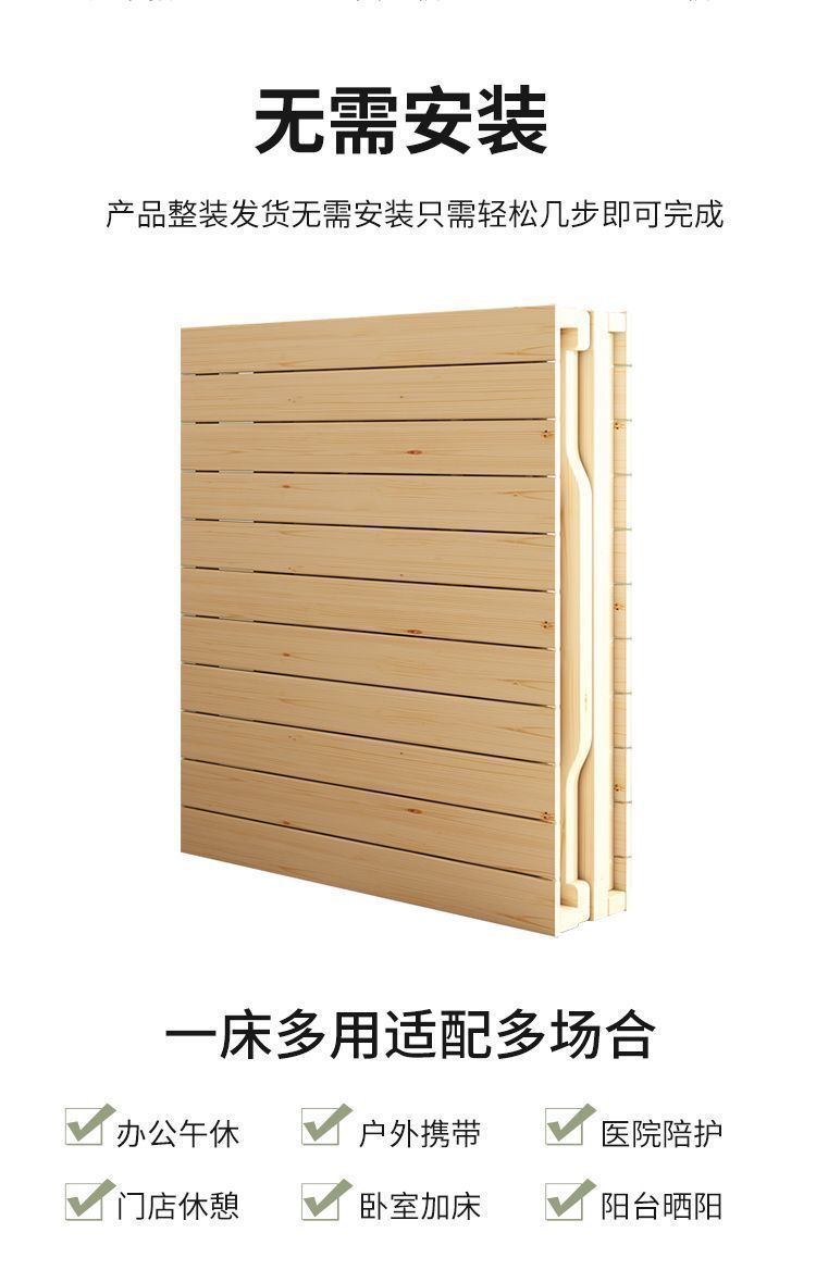 원목 무설치 접이식 침대 싱글 침대 점심시간 임대실 실용적인 원목 침대 단단한 침대 소형 침대 가정용스토어 가기