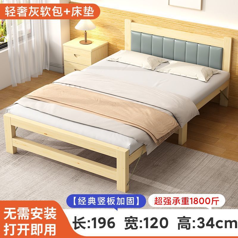 • 폭 1.2m丨접이식 원목침대 + 라이트 럭셔리 그레이 소프트백