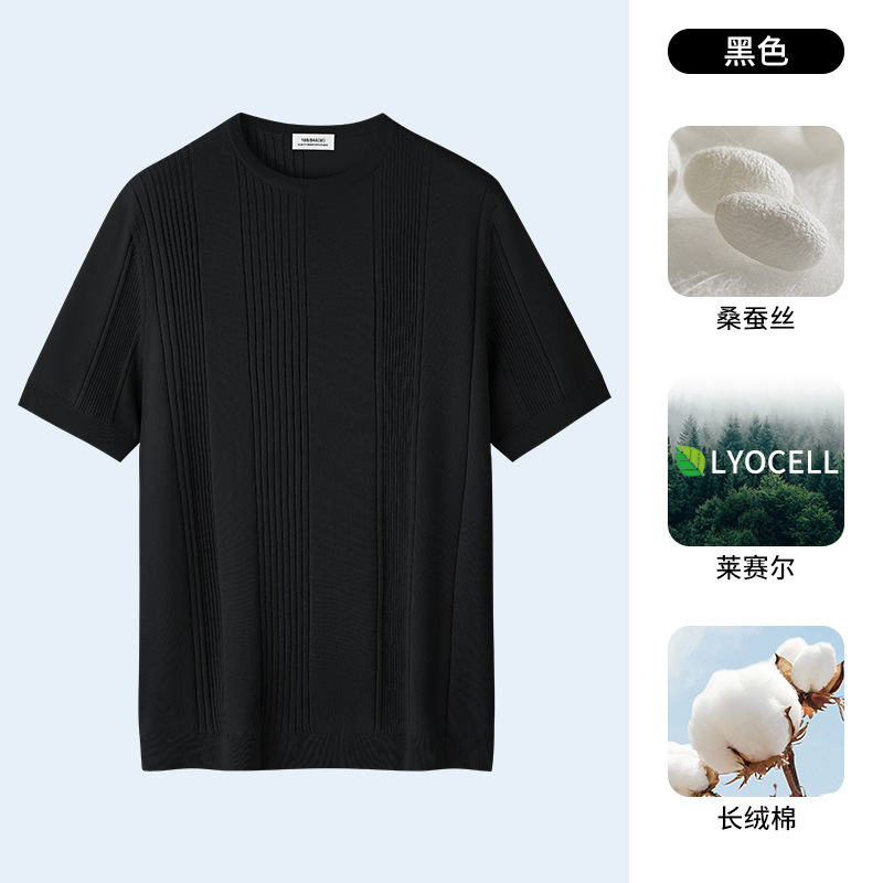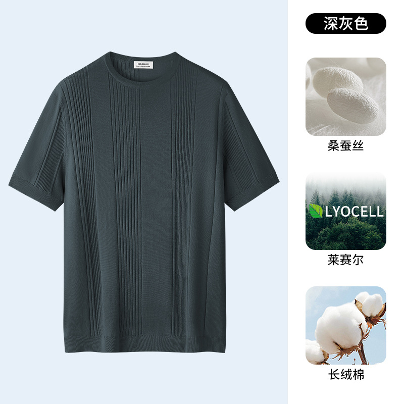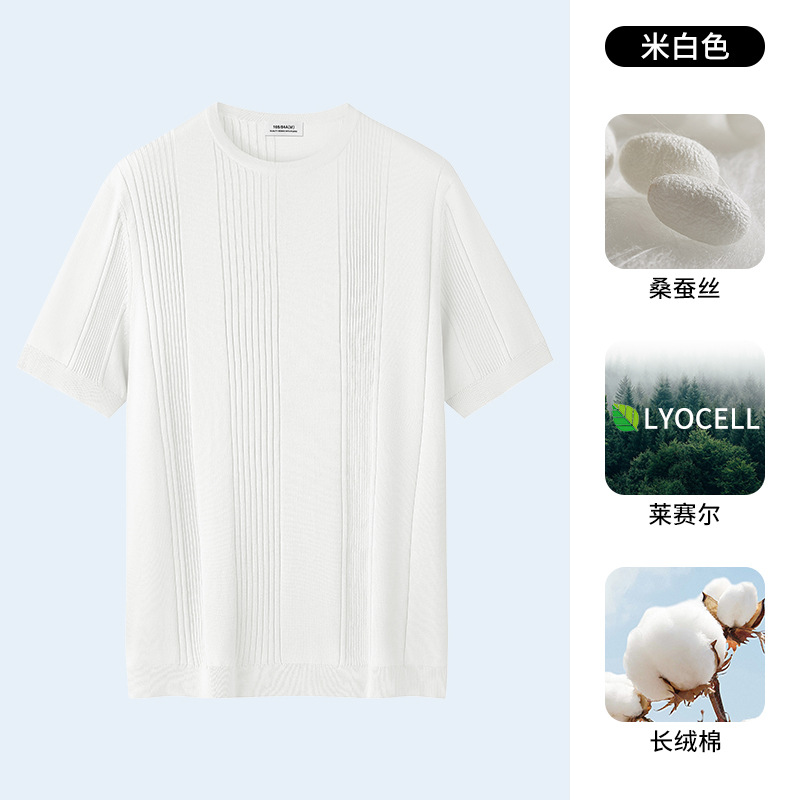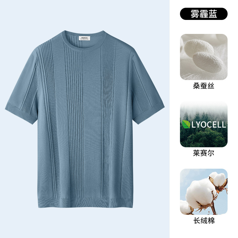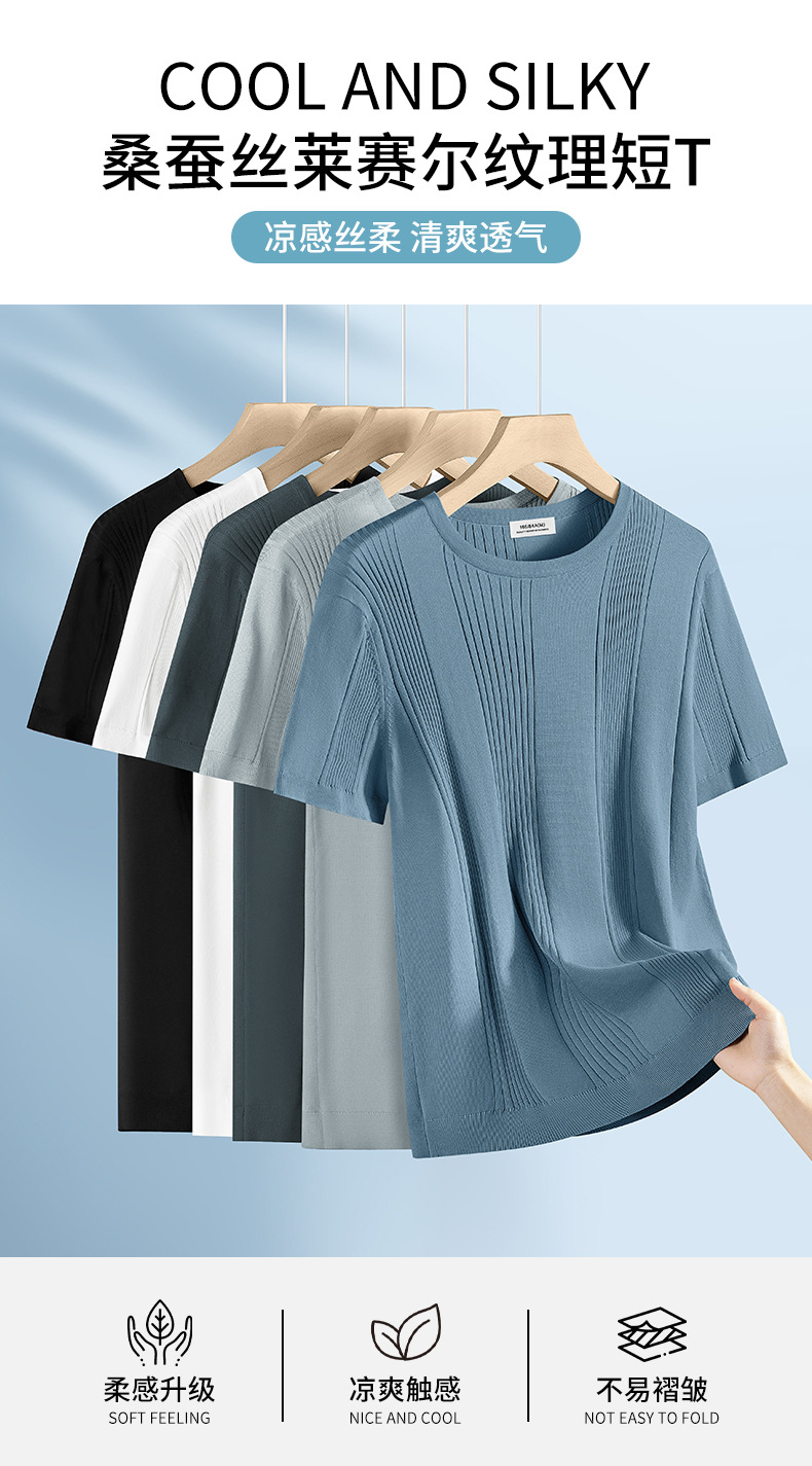 멀버리 실크 텐셀 라이셀 니트 티셔츠 남성용 여름 스트라이프 디자인 통기성 좋은 다용도 캐주얼 아이스 실크 반팔스토어 가기