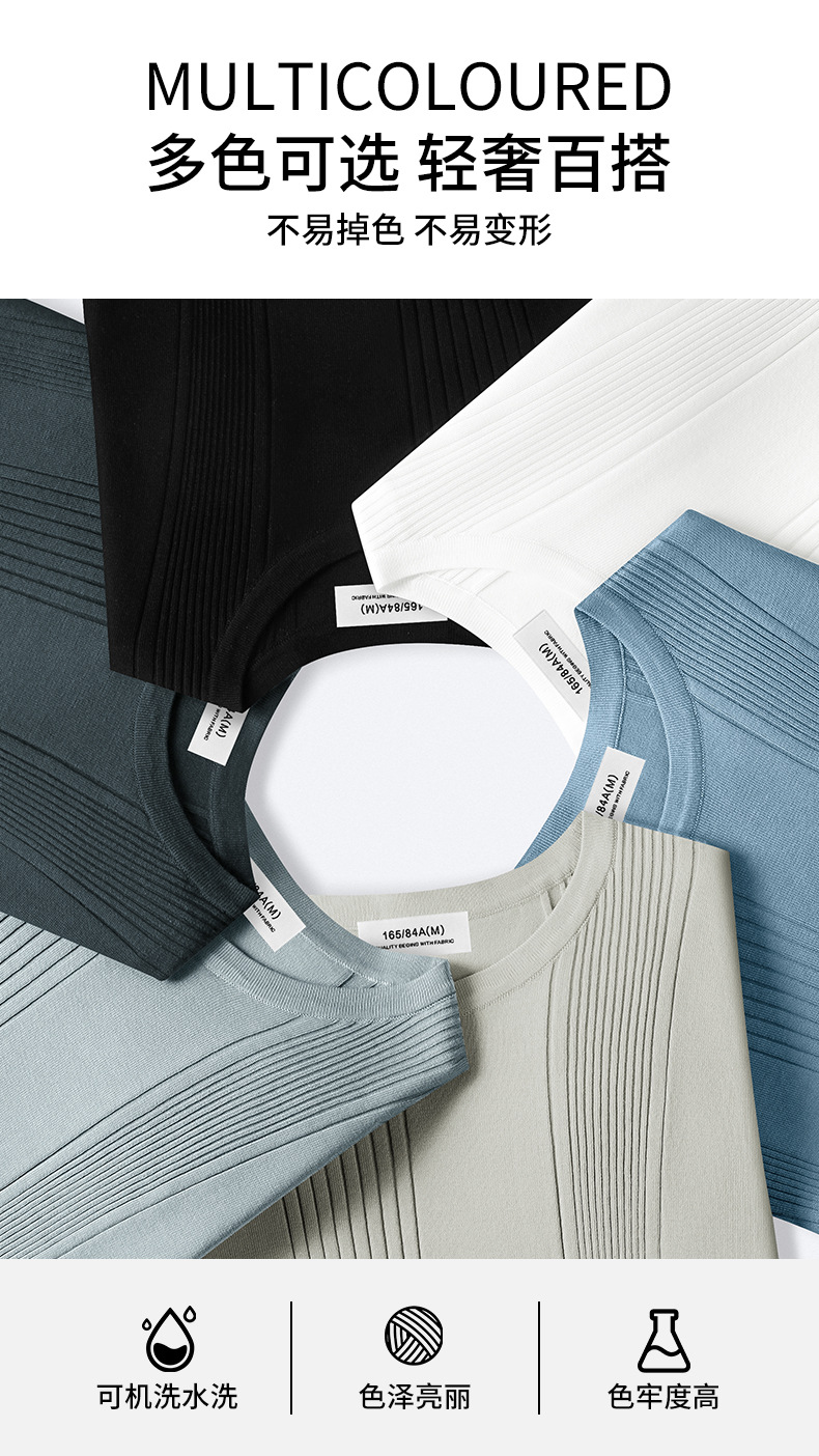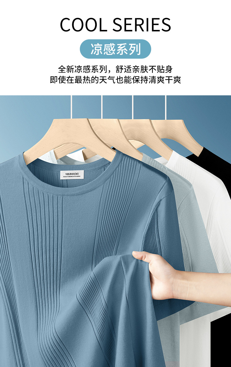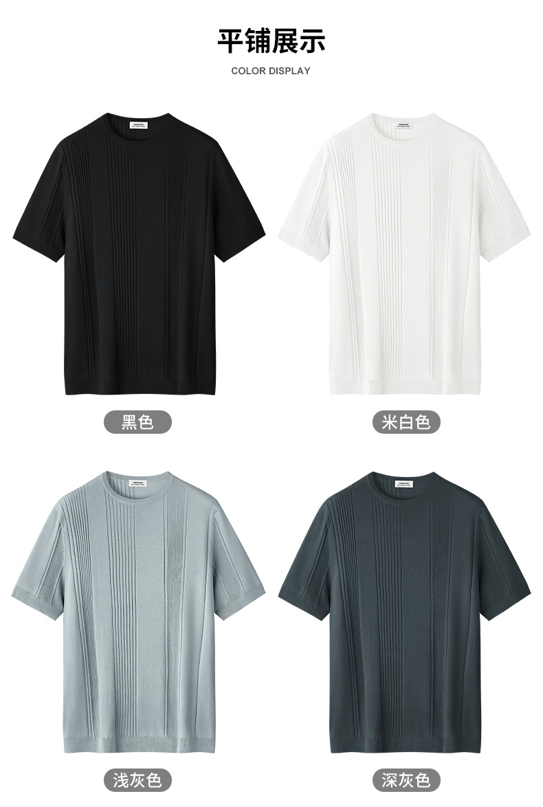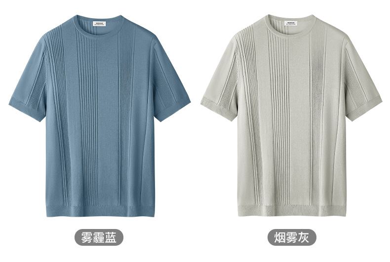 멀버리 실크 텐셀 라이셀 니트 티셔츠 남성용 여름 스트라이프 디자인 통기성 좋은 다용도 캐주얼 아이스 실크 반팔스토어 가기