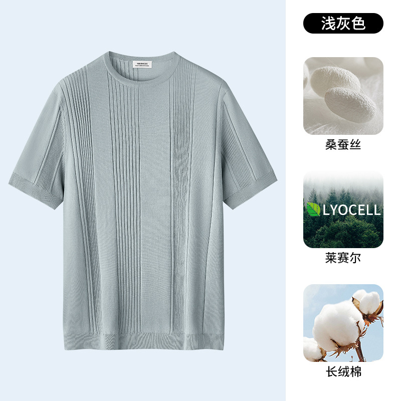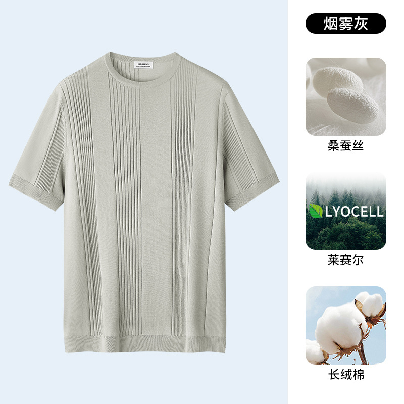 멀버리 실크 텐셀 라이셀 니트 티셔츠 남성용 여름 스트라이프 디자인 통기성 좋은 다용도 캐주얼 아이스 실크 반팔
