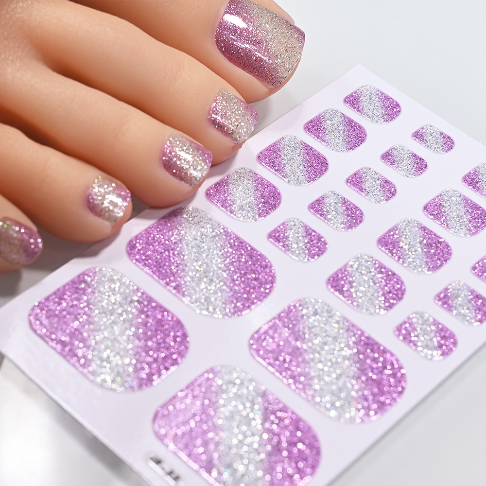 크로스보더 25가지 글리터 발가락 매니큐어 스티커, 달콤한 양파 핑크 발톱 스티커, 창의적인 방수 발톱 오일 스티커