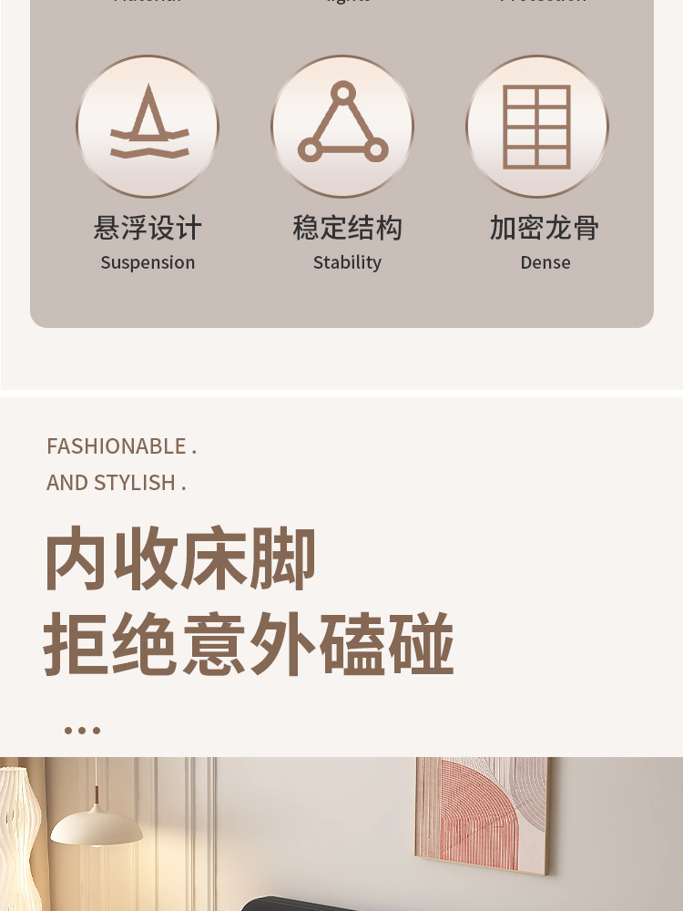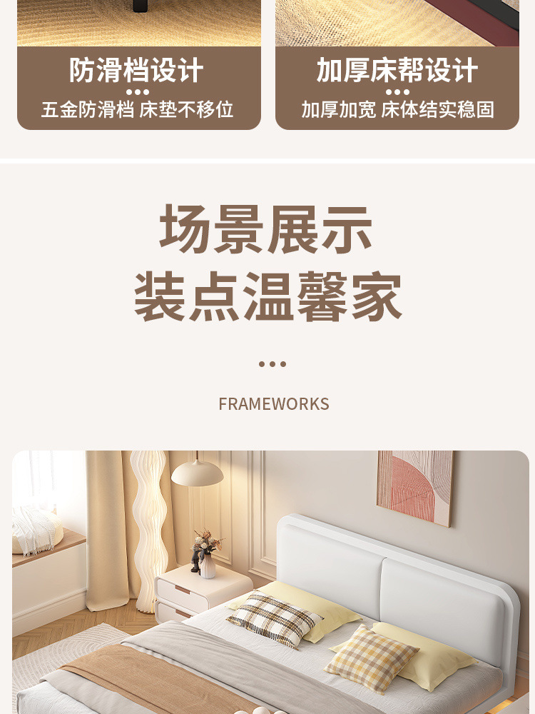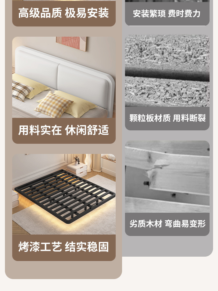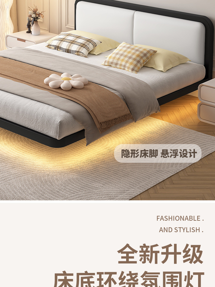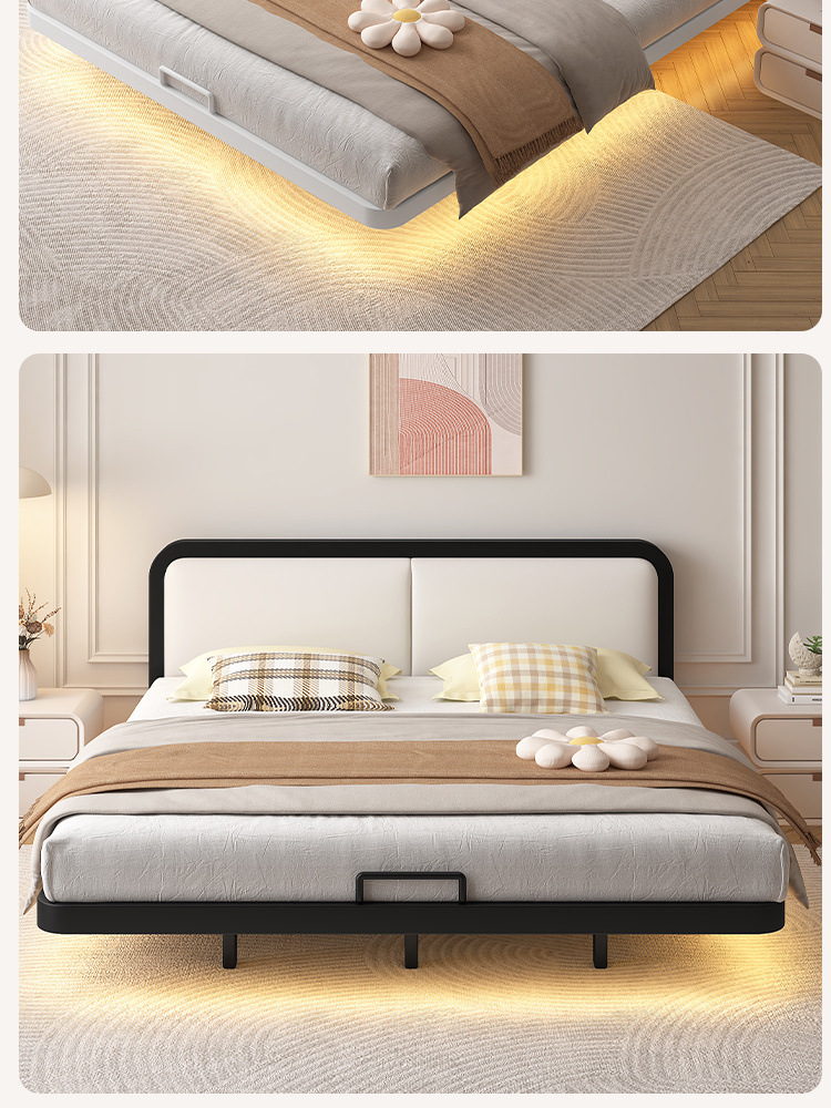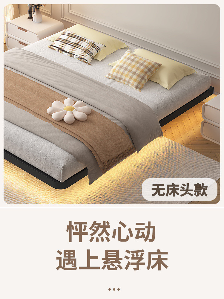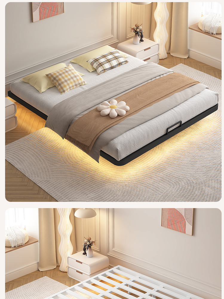 서스펜션 침대, 모던하고 심플한 침대 없는 침대 프레임, 가정용 마스터 침실용 대형 침대 시트, 더블 침대, 철제 침대, 인터넷 연예인