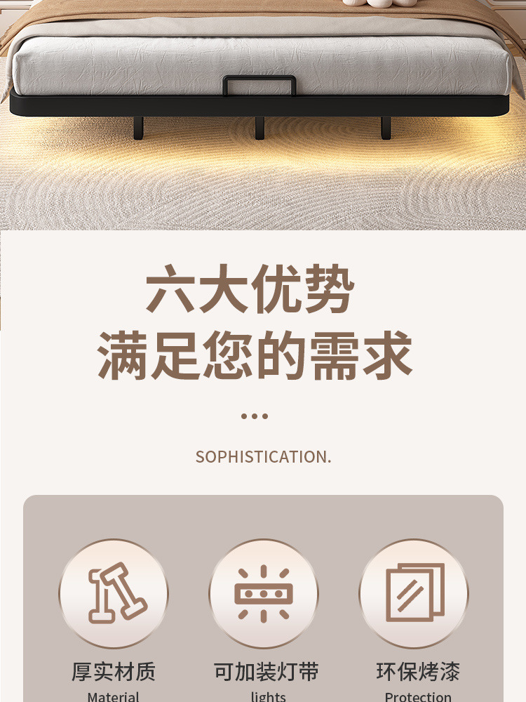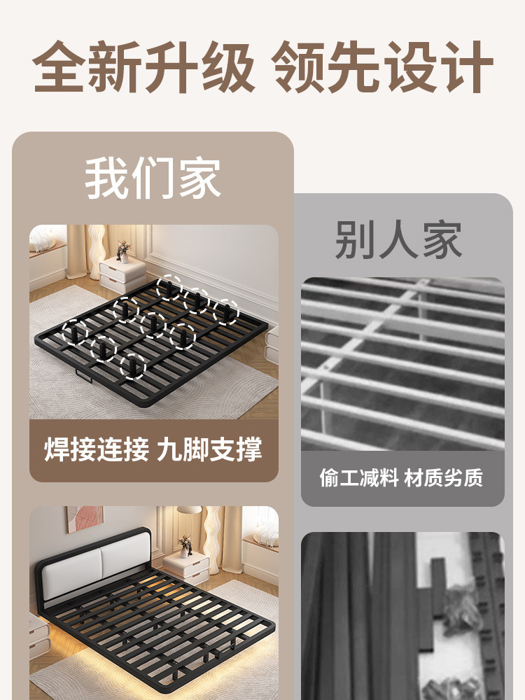 서스펜션 침대, 모던하고 심플한 침대 없는 침대 프레임, 가정용 마스터 침실용 대형 침대 시트, 더블 침대, 철제 침대, 인터넷 연예인스토어 가기
