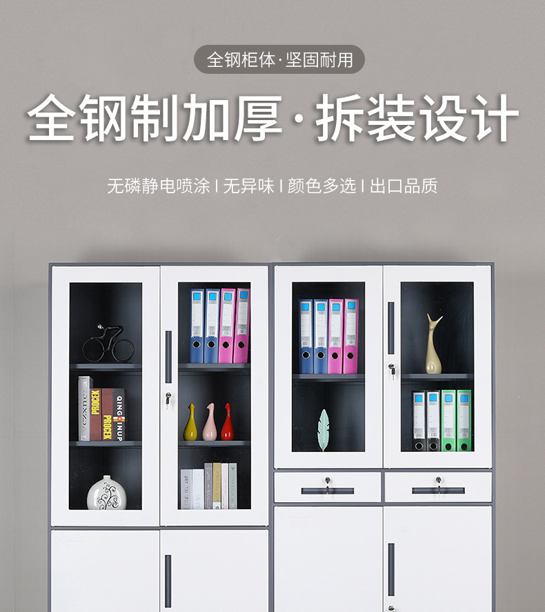 강철 좁은 가장자리 분해 파일 캐비닛 서랍 유리 도어 잠금 장치가있는 사무실 금융 철 캐비닛 정보 파일 보관 캐비닛