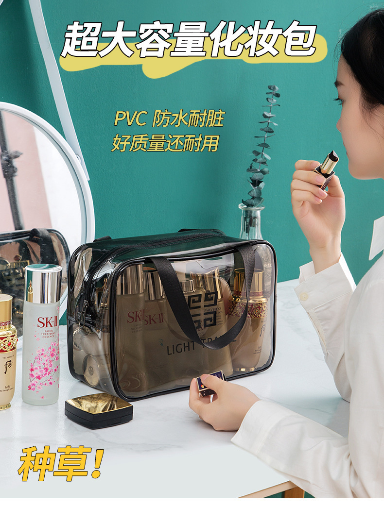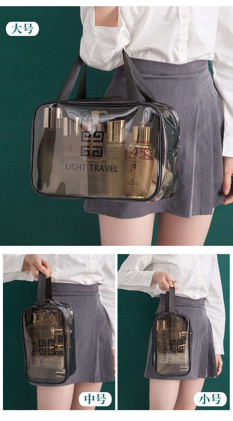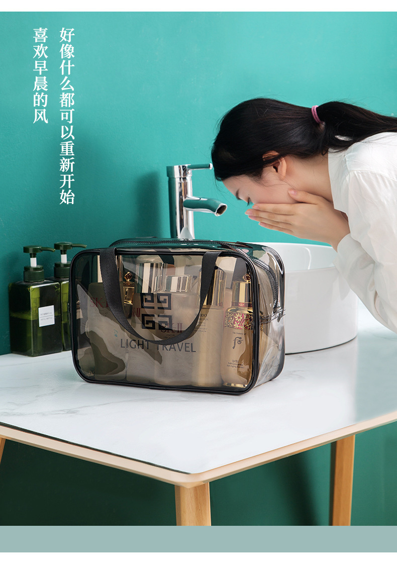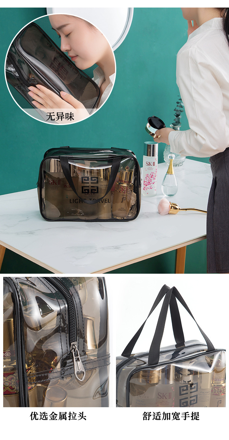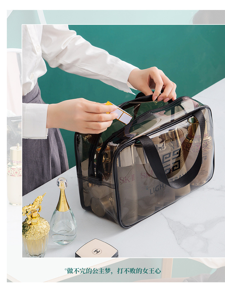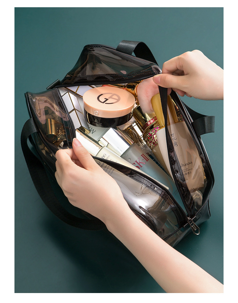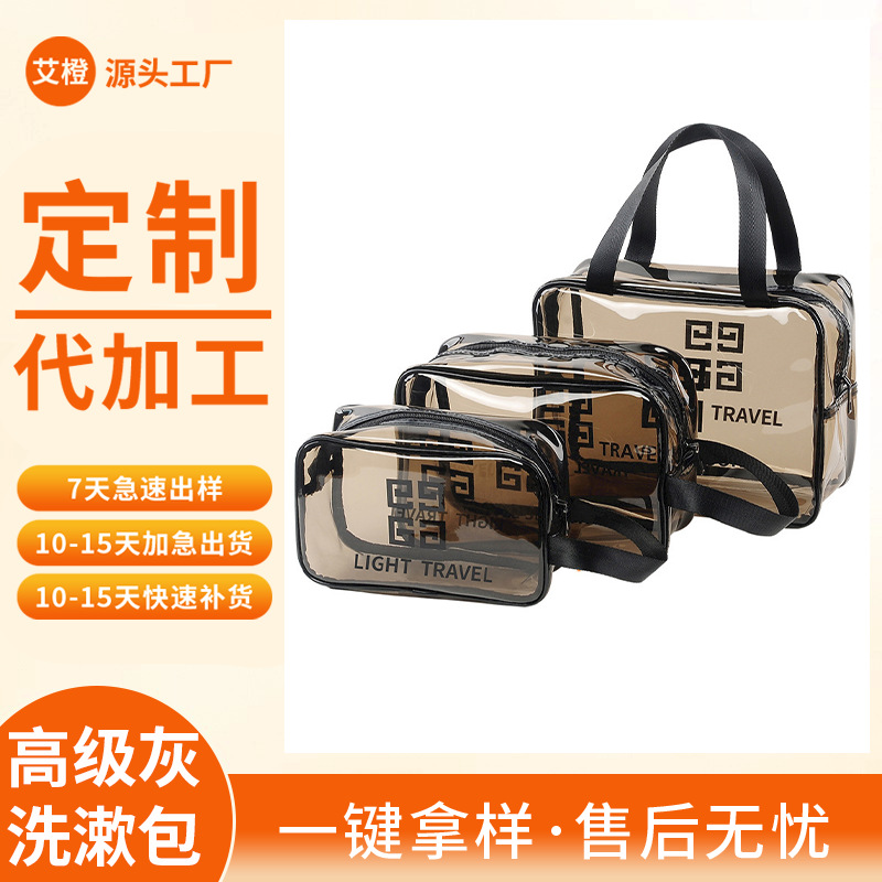맞춤형 고급 회색 세면 용품 가방 PVC 방수 투명 보관 가방 대용량 두꺼운 건식 및 습식 분리 보관 가방스토어 가기