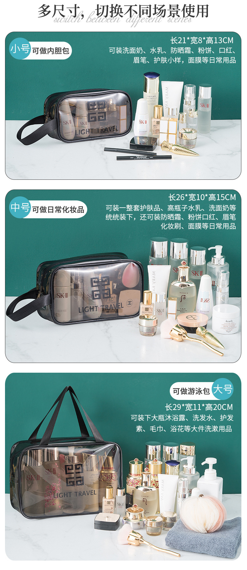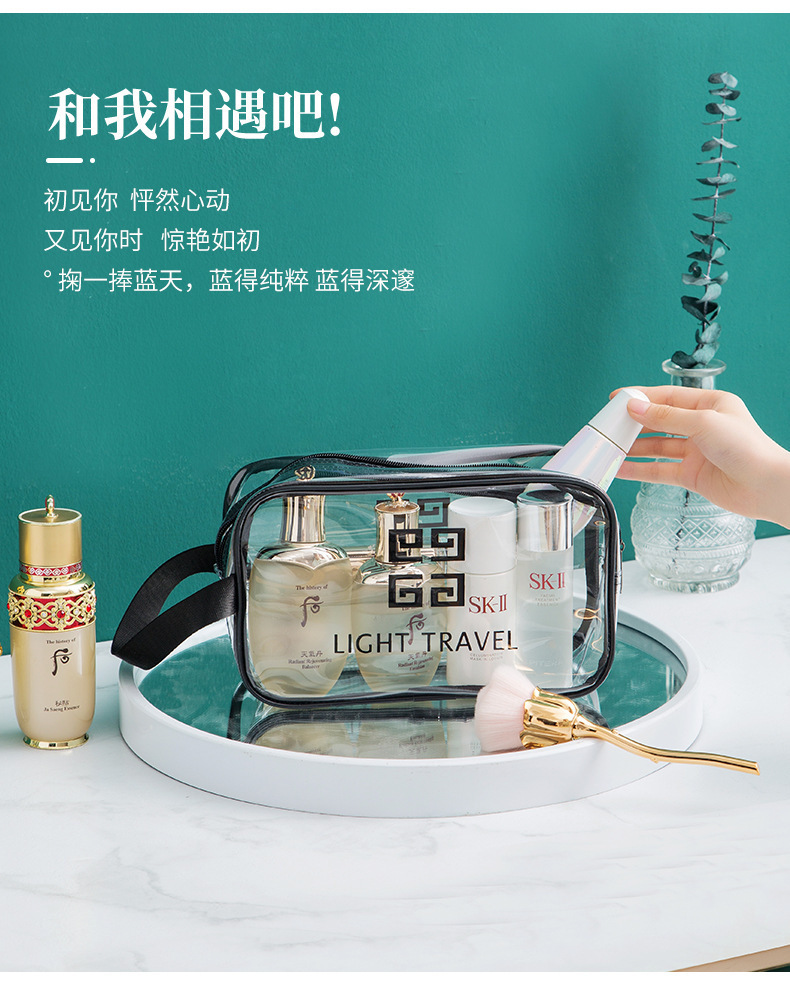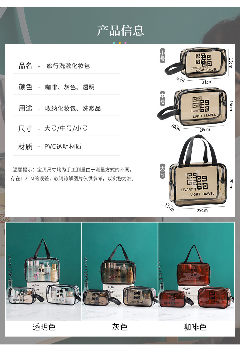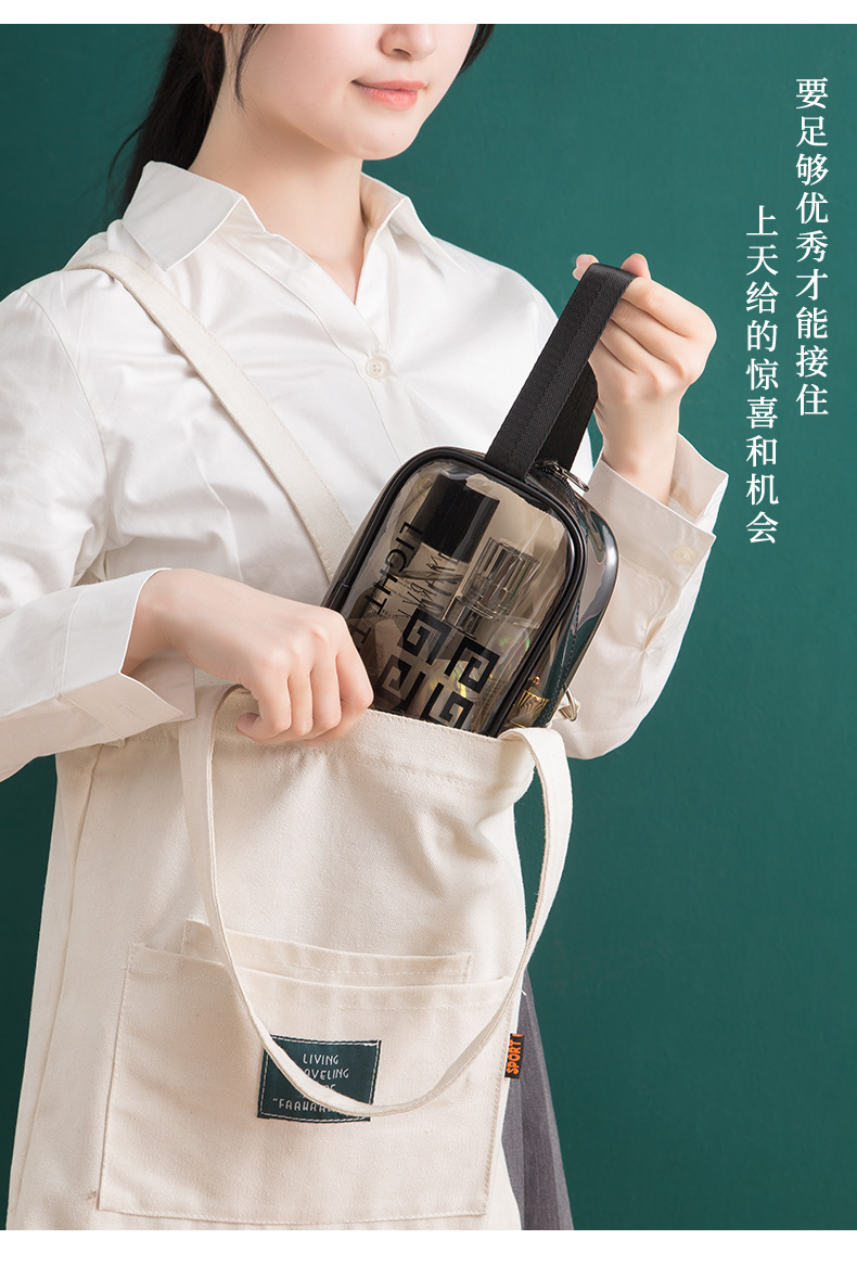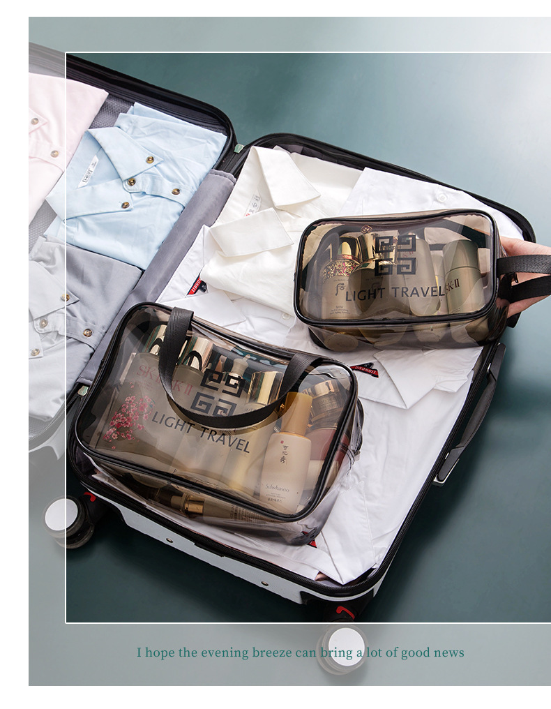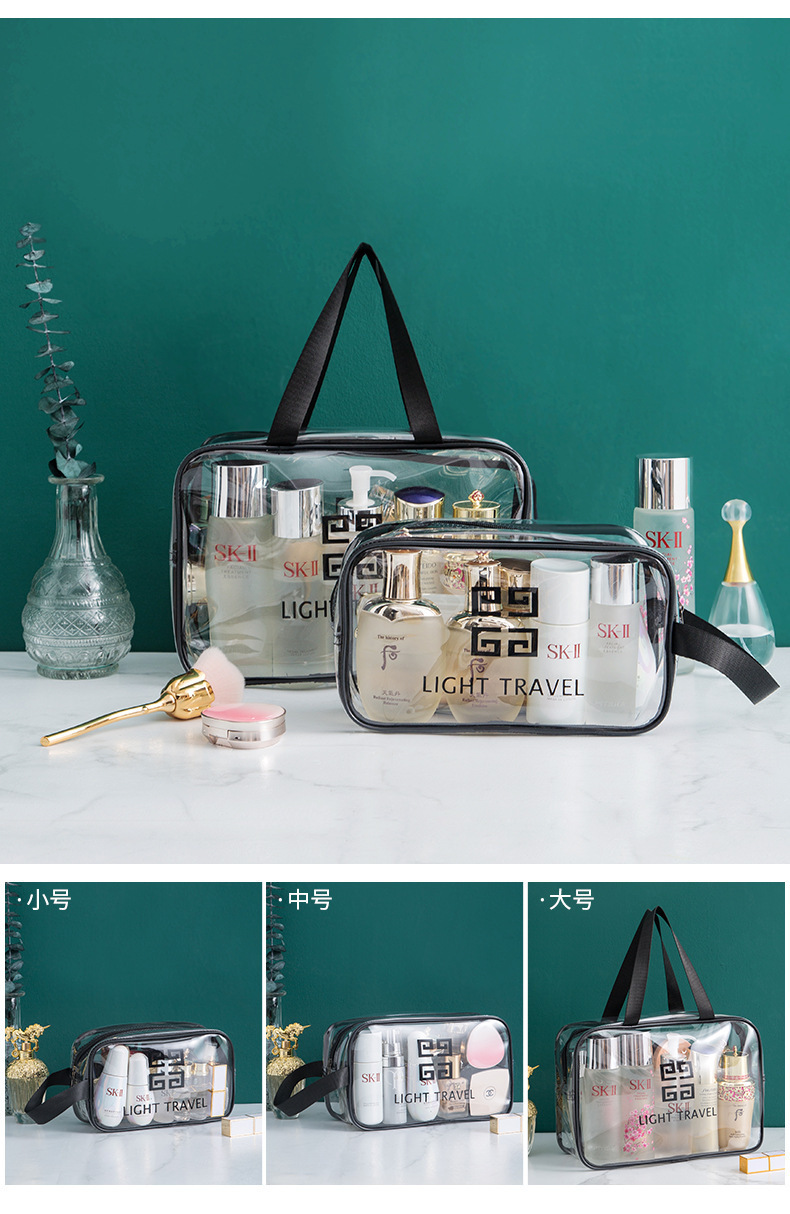 맞춤형 고급 회색 세면 용품 가방 PVC 방수 투명 보관 가방 대용량 두꺼운 건식 및 습식 분리 보관 가방스토어 가기