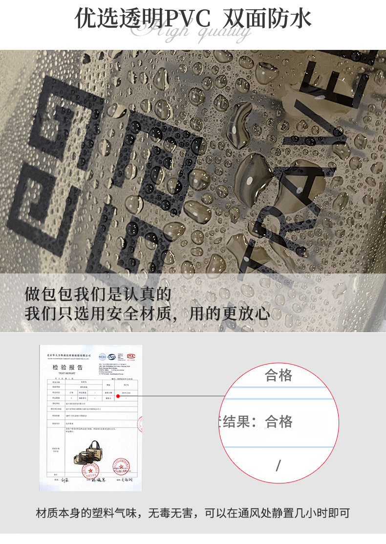 맞춤형 고급 회색 세면 용품 가방 PVC 방수 투명 보관 가방 대용량 두꺼운 건식 및 습식 분리 보관 가방