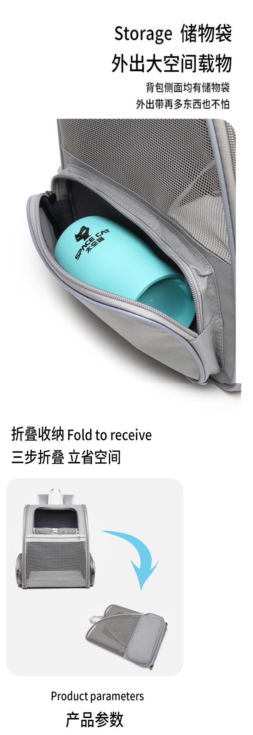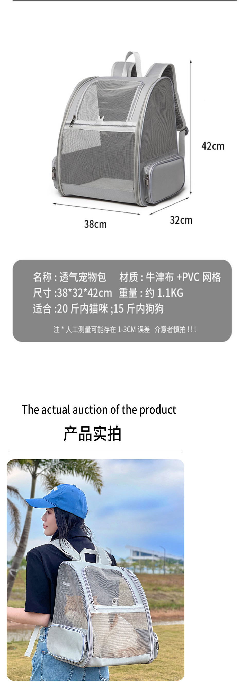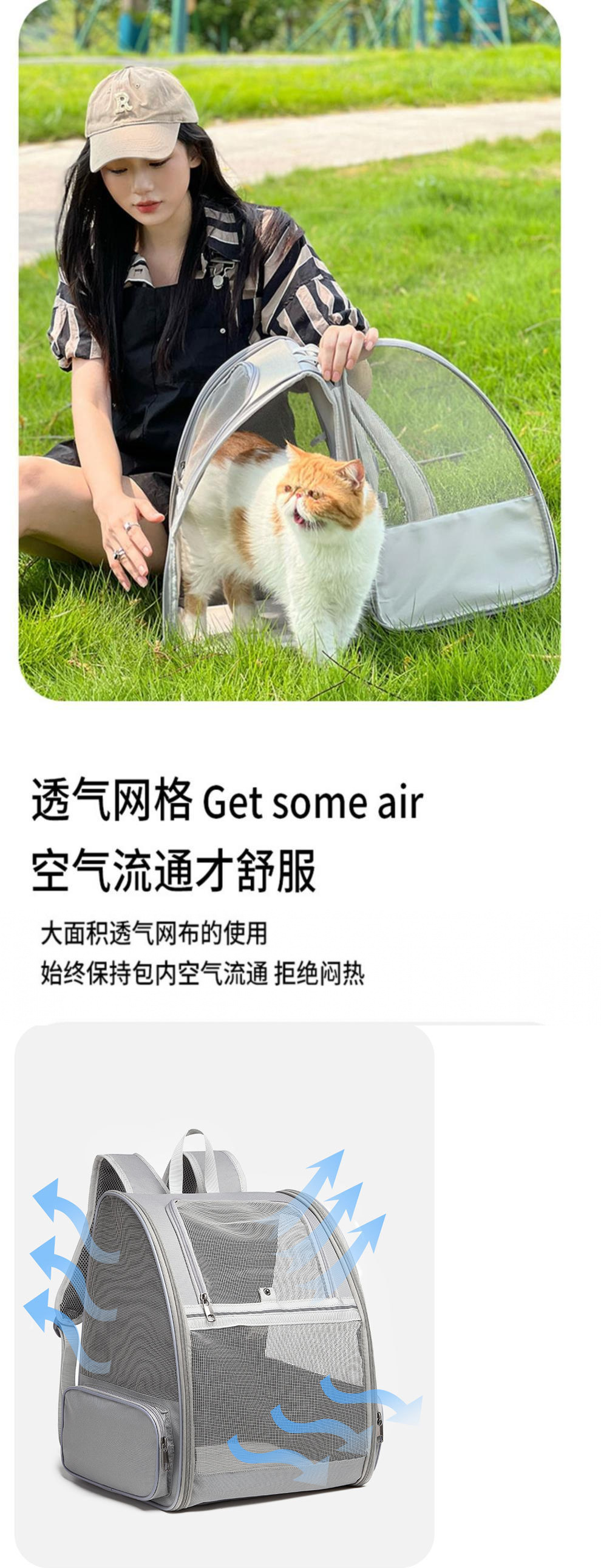 고양이 가방, 휴대용 및 통기성, 고양이 2마리용 대용량 테이크아웃 가방, 여름용 강아지 가방, 배낭, 고양이 배낭스토어 가기